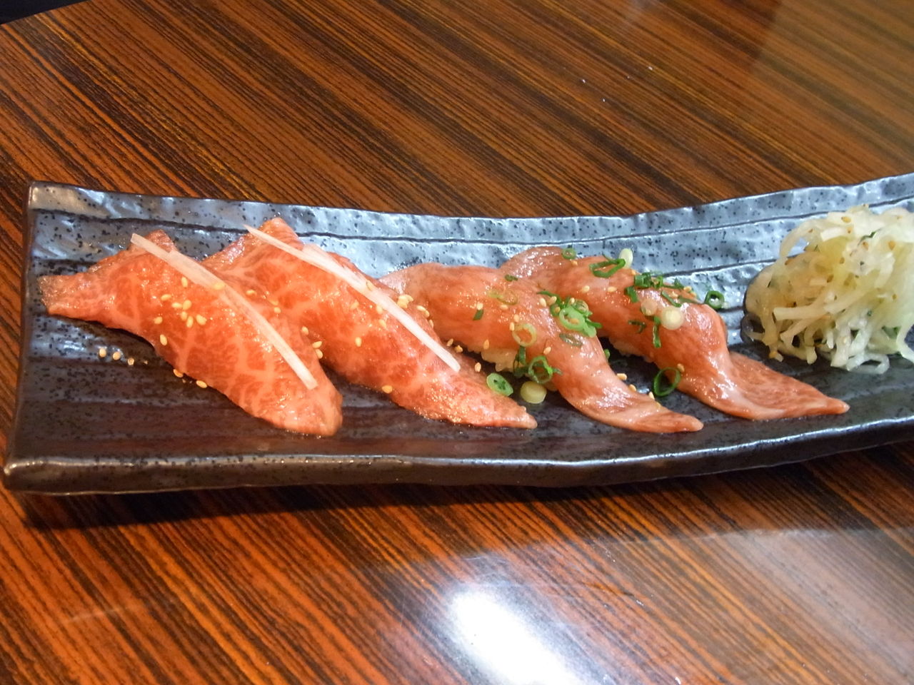 薄切りにされているので、両面を炙るように、軽く火を通したあと・・・