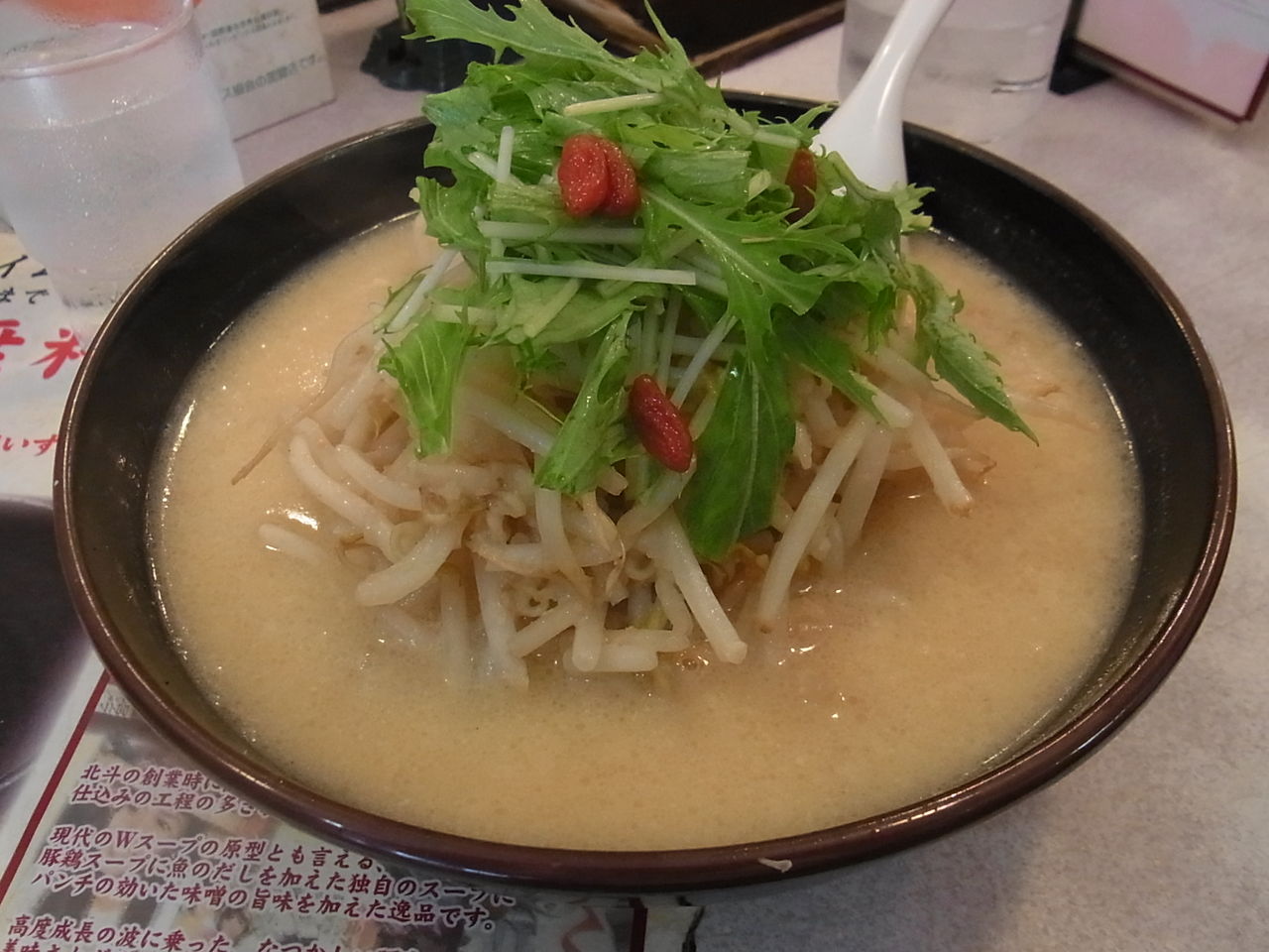 【豆乳味噌らーめん(850円)+大盛(ランチ無料)+豚の背油(100円)】
