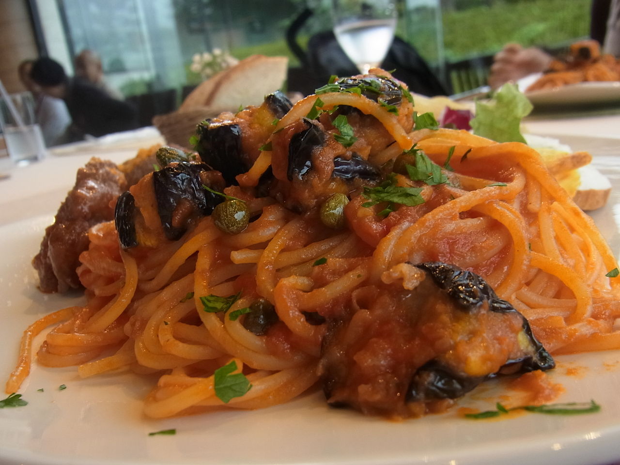 秋ナスの旨みが活きた、ナスとケッパーのトマトソーススパゲッティーという炭水化物に・・・