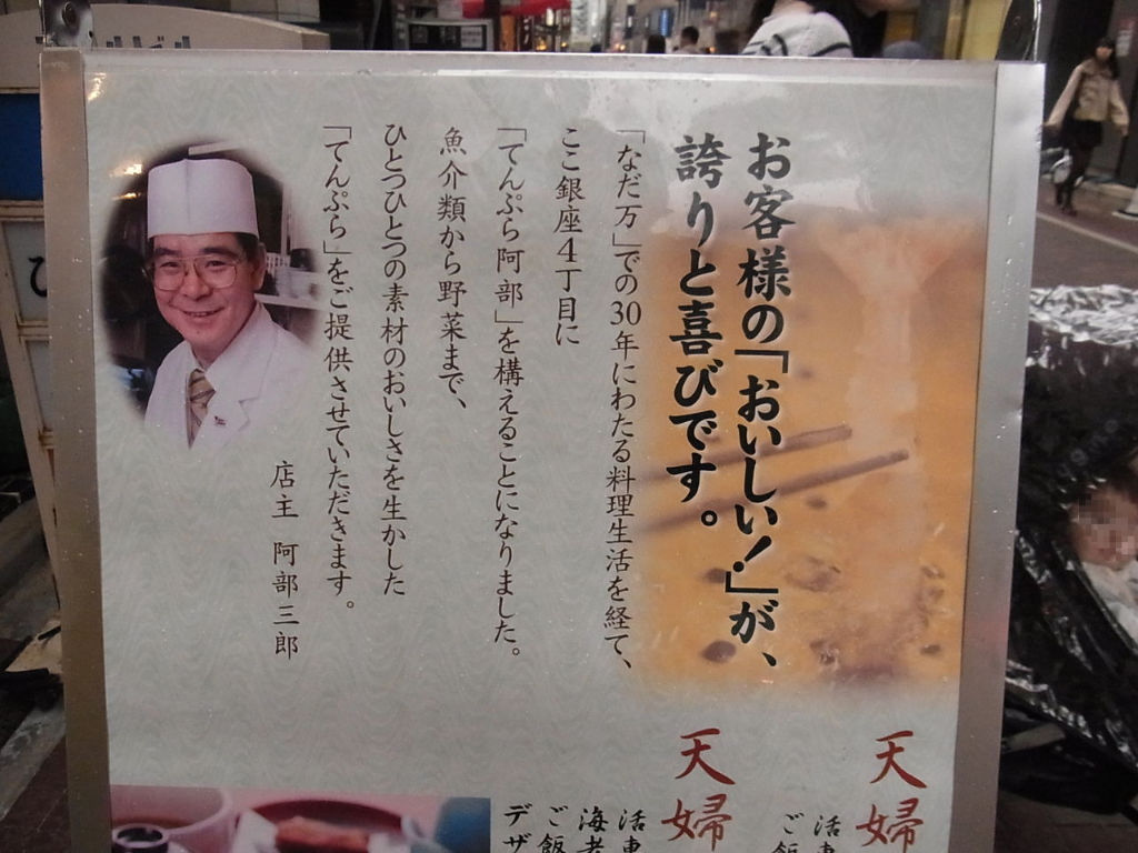 そんなわけで、やって来たのは、なだ万で30年修行した店主の天ぷら屋、「阿部(あべ)」。