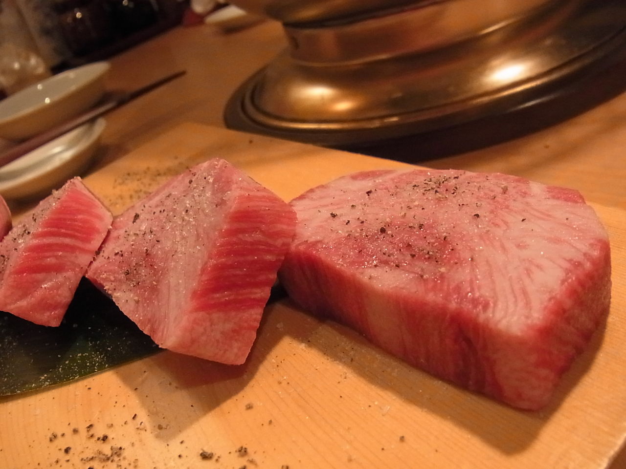 さいごのラストミートは、ビッシリの霜降りっぷりがたまならい、贅沢なリブロースの芯部分。