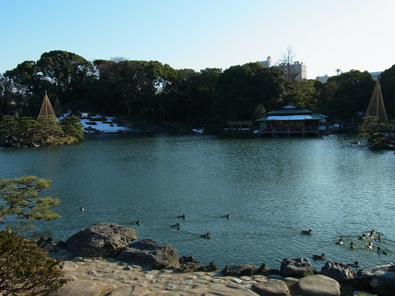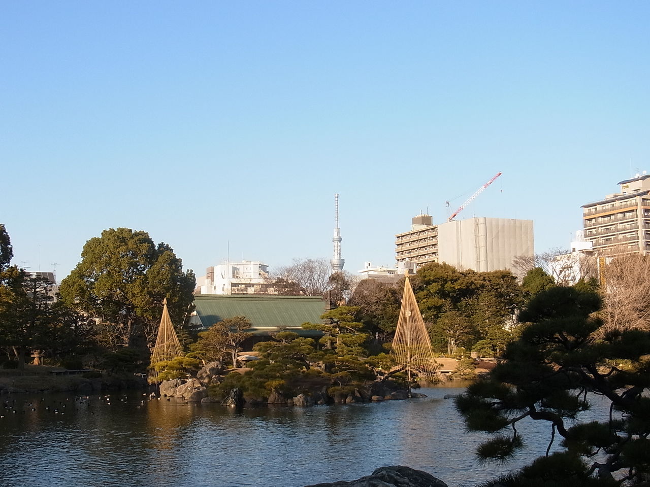 古き良き文化(庭園)を経て、現代(建築マンション)の先にある、明るい未来(スカイツリー)?