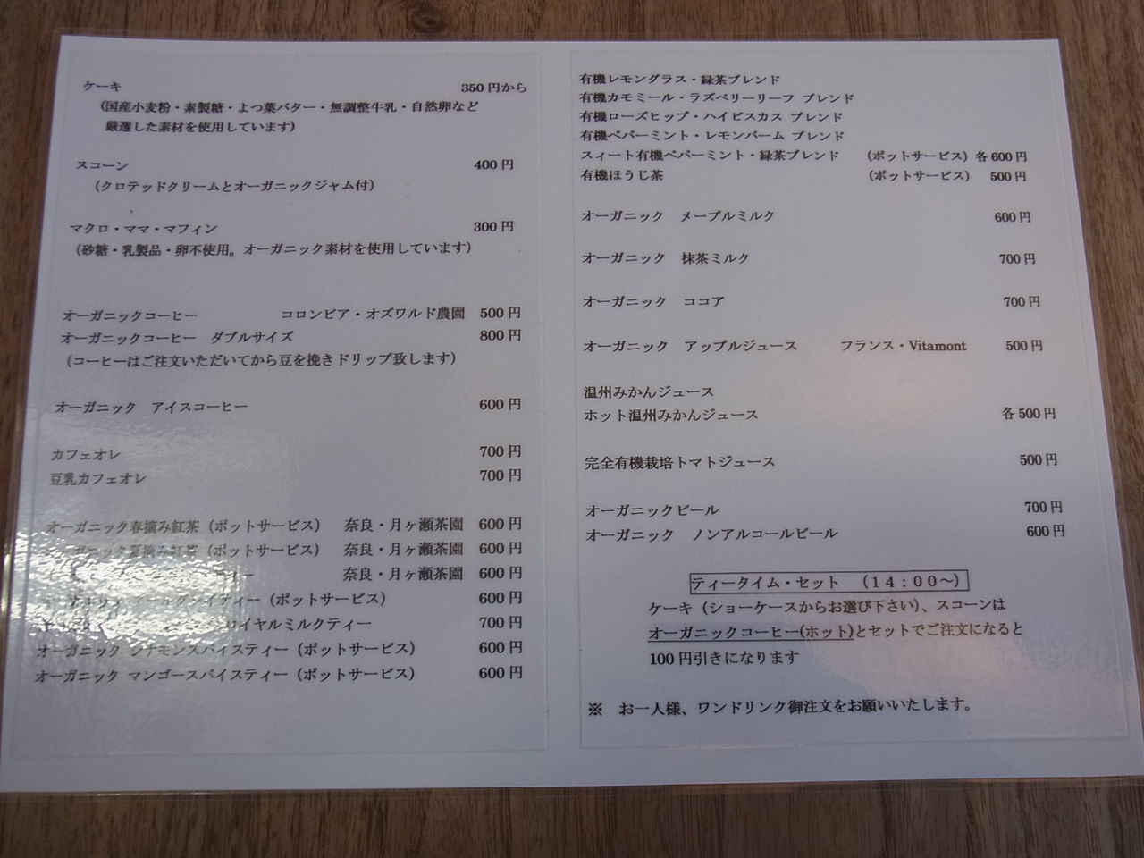 【オーガニックコーヒー (500円)】
