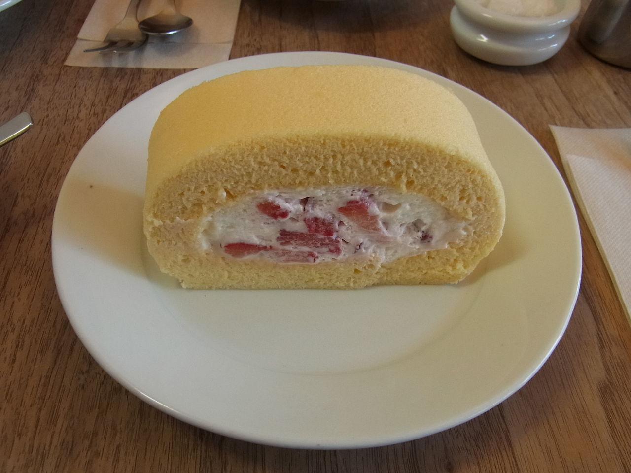 【ストロベリーロールケーキ (480円) *コーヒーとセットで100円引き】