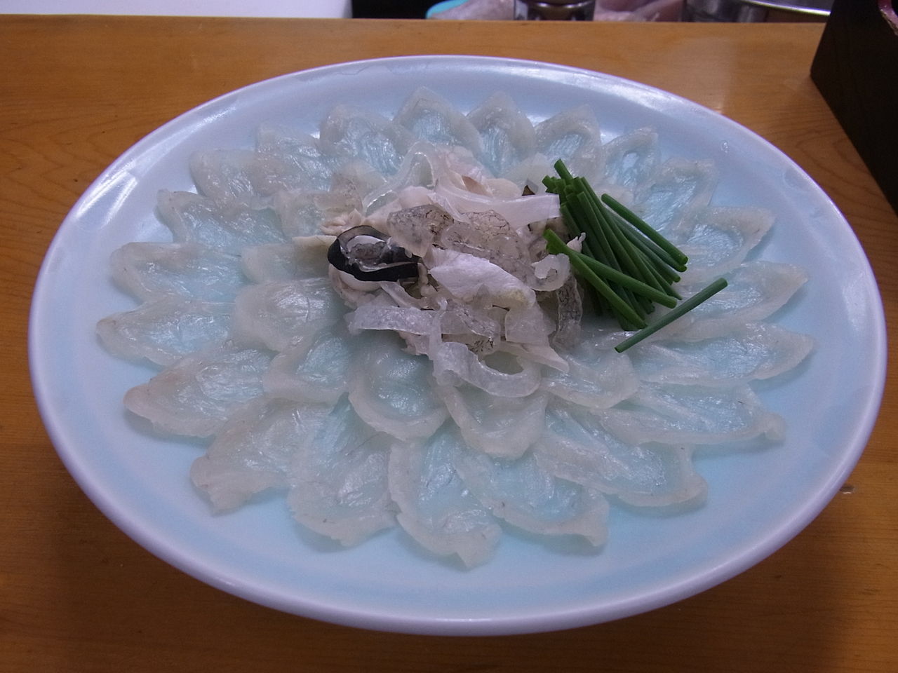 続いては、ふぐ屋でコレを食べずには帰れない、"てっさ"とも言われる、王道のふぐ刺し!