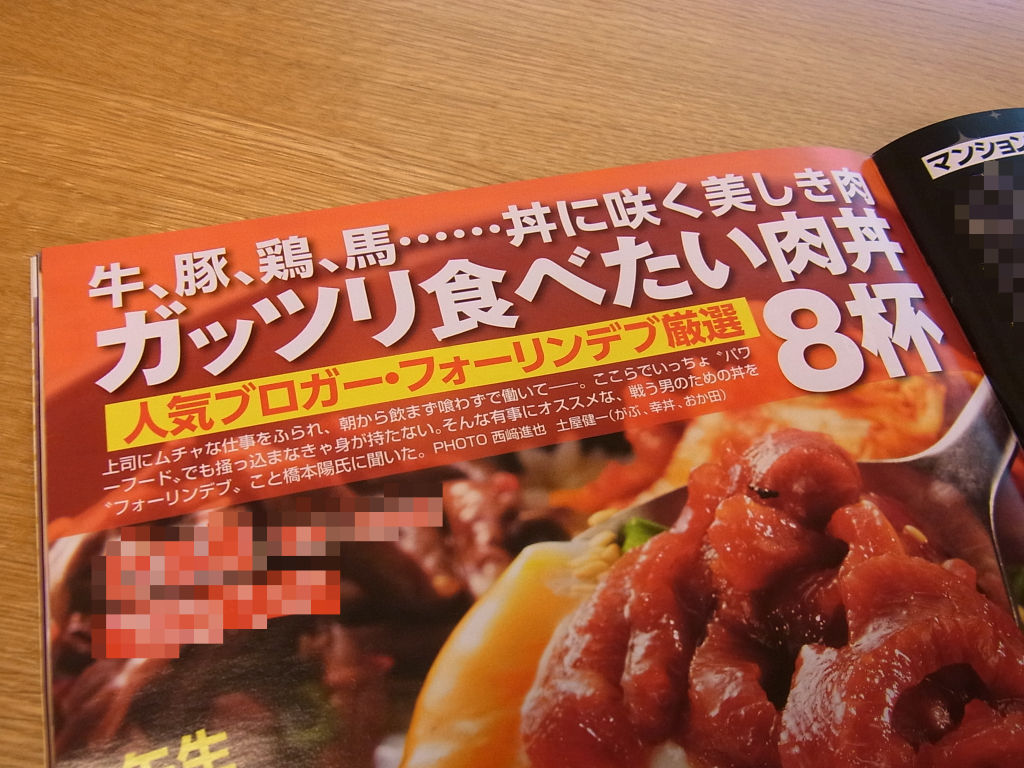 「フォーリンデブ厳選・ガッツリ食べたい肉丼特集」が、カラー6ページで掲載になりました!