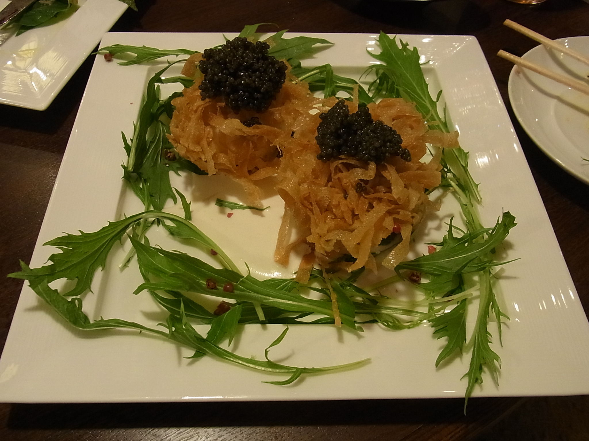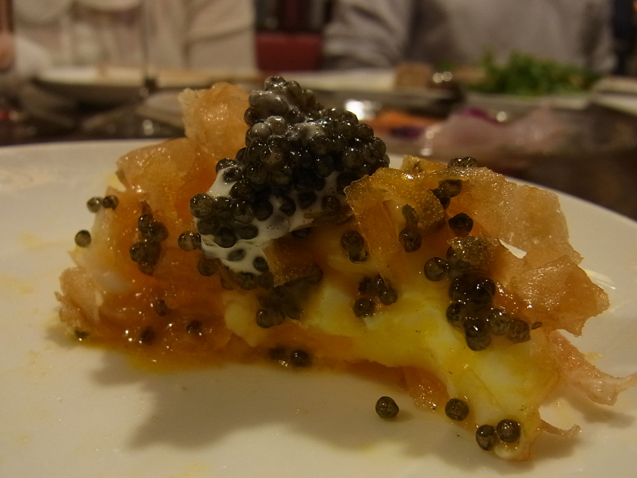 なにが高いって、この半熟卵揚げに乗せられた、世界三大珍味のキャビアが、てんこ盛り!