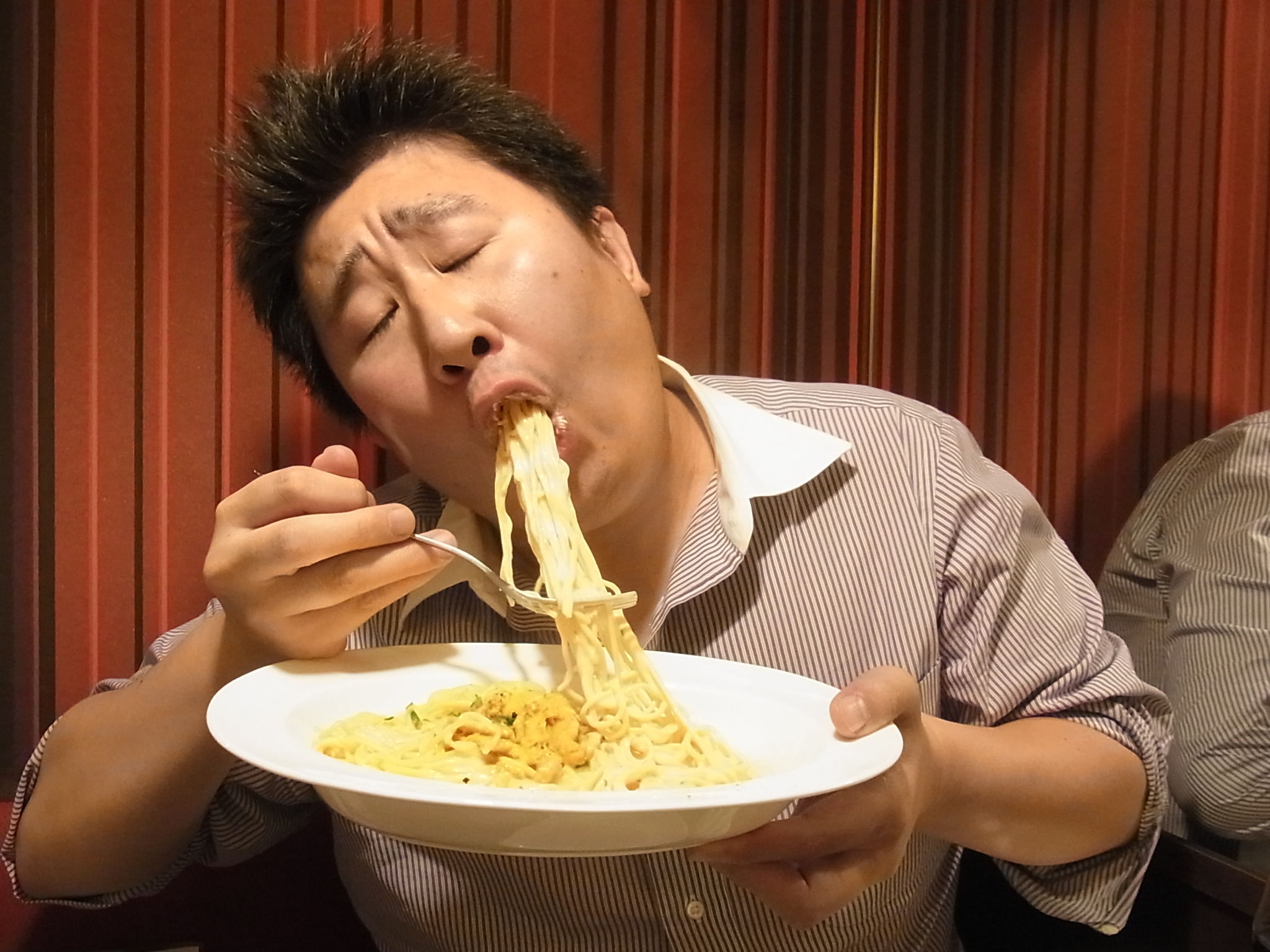 さぁ、そしてここからはお楽しみ、炭水化物タイム! ウニクリームソースのタリオリーニは・・・