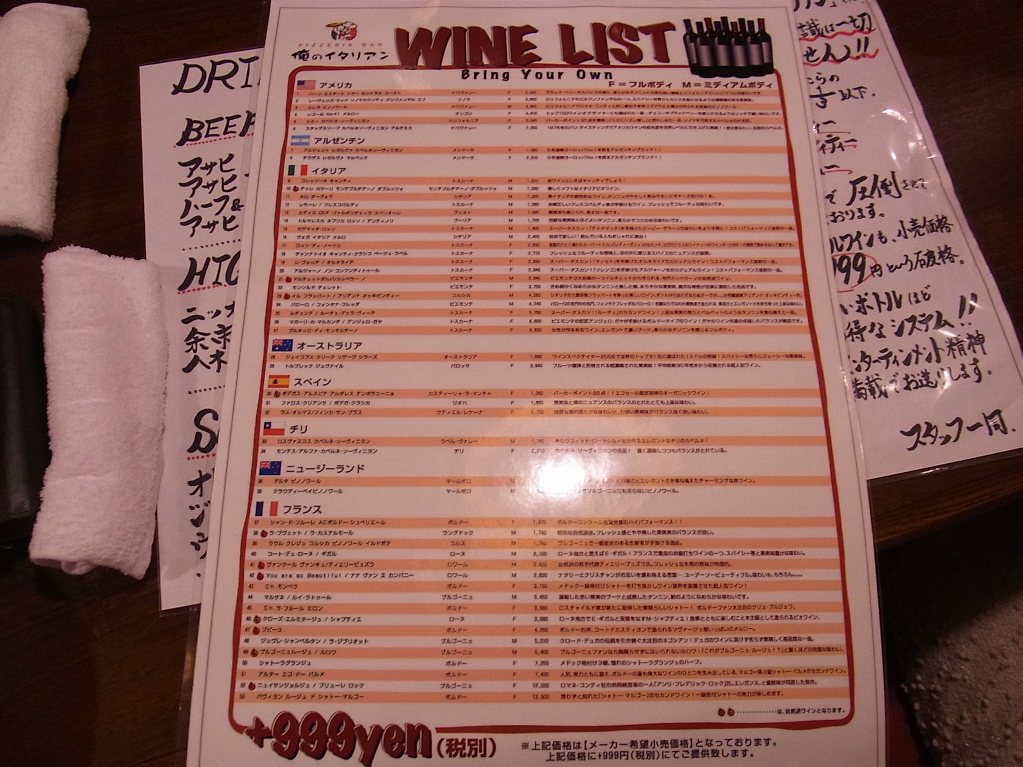 どれも原価+999円というワインは、スッキリと辛口な甲州産・アルガブランカをチョイス。