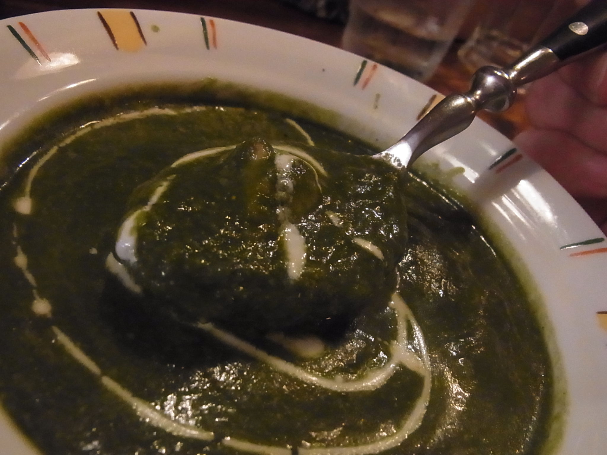 テンション上がって、もうひとつ頼んでみたサーグパニール(ほうれん草とチーズ)カレーは・・・
