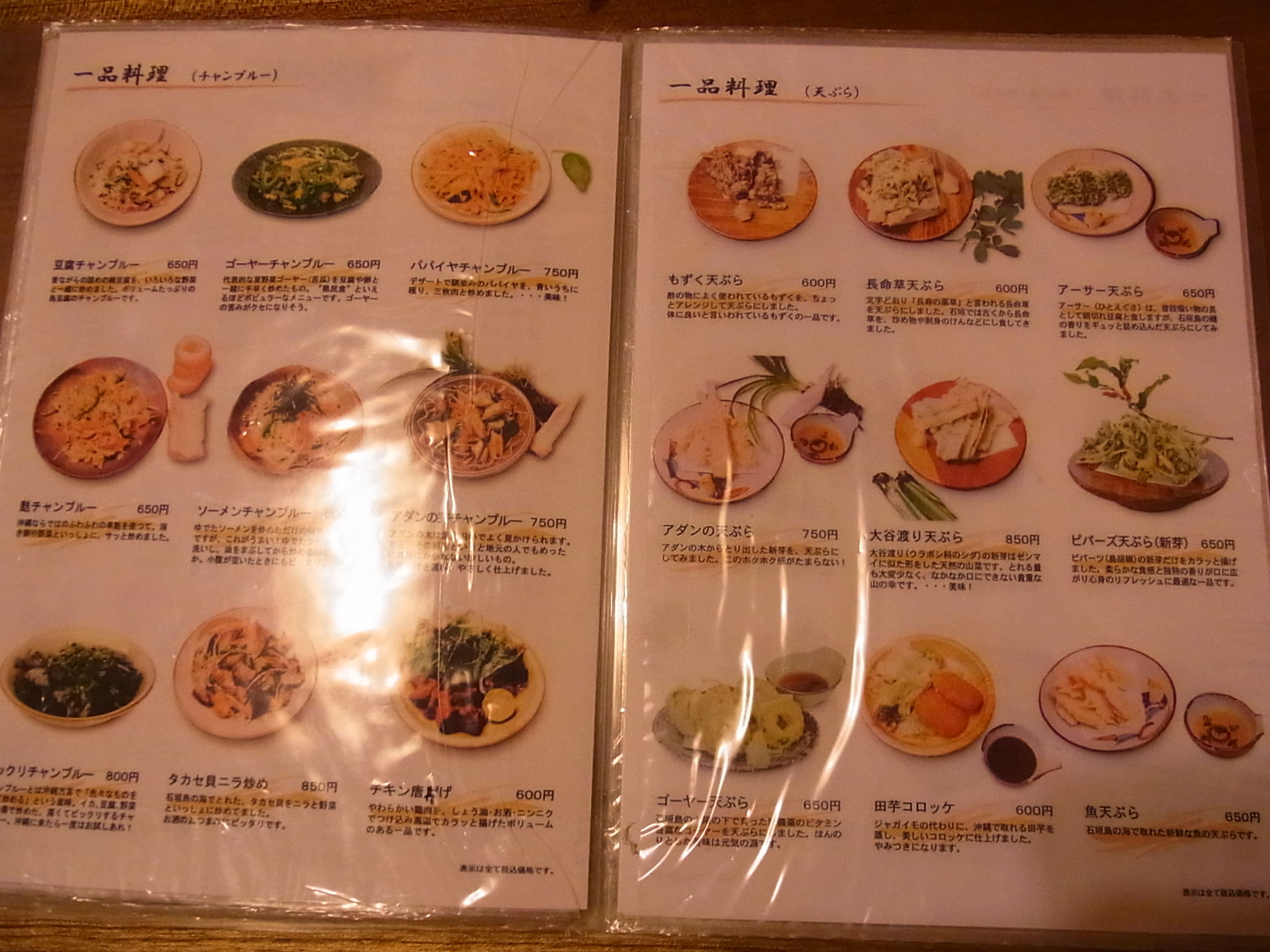 【ナーベラー酢味噌 (580円) / 大谷渡り天ぷら (850円)】