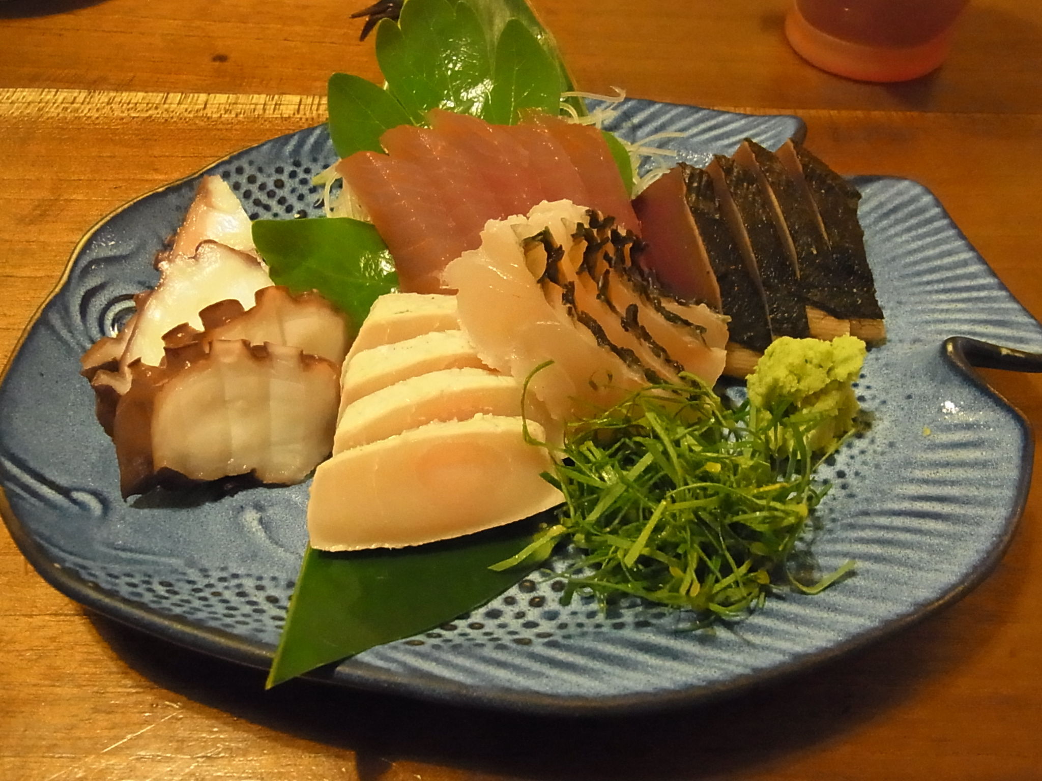 石垣島の地魚と勝負! マグロやタコ、そして石垣鯛など、5種類の魚介が盛られた一皿。