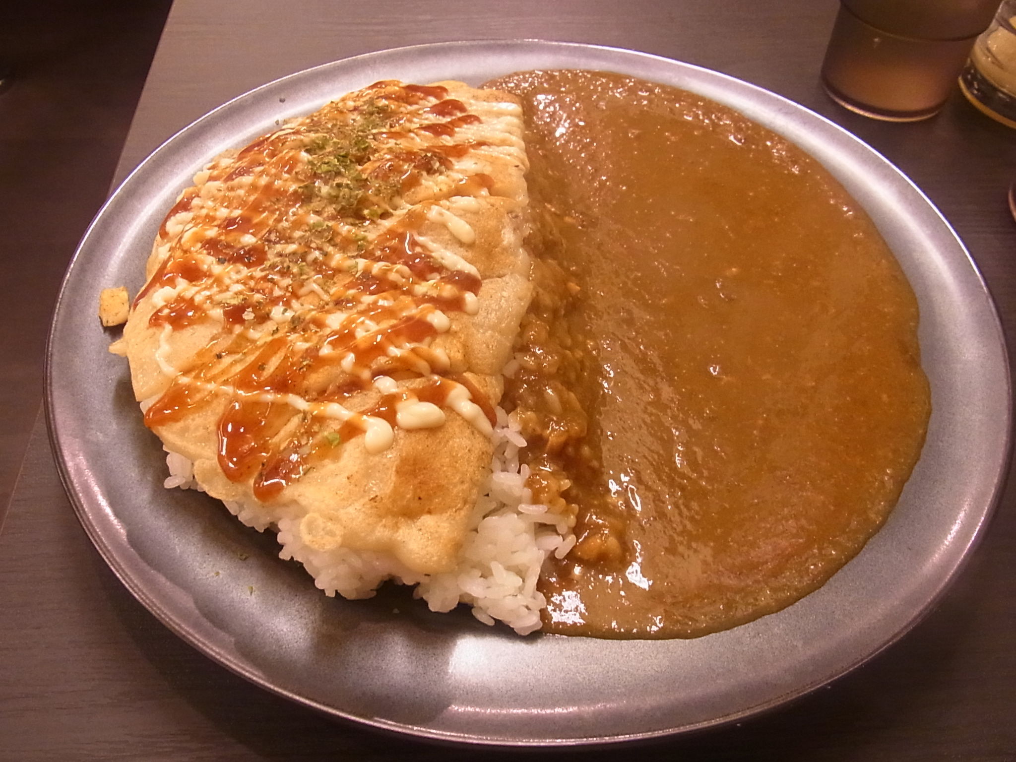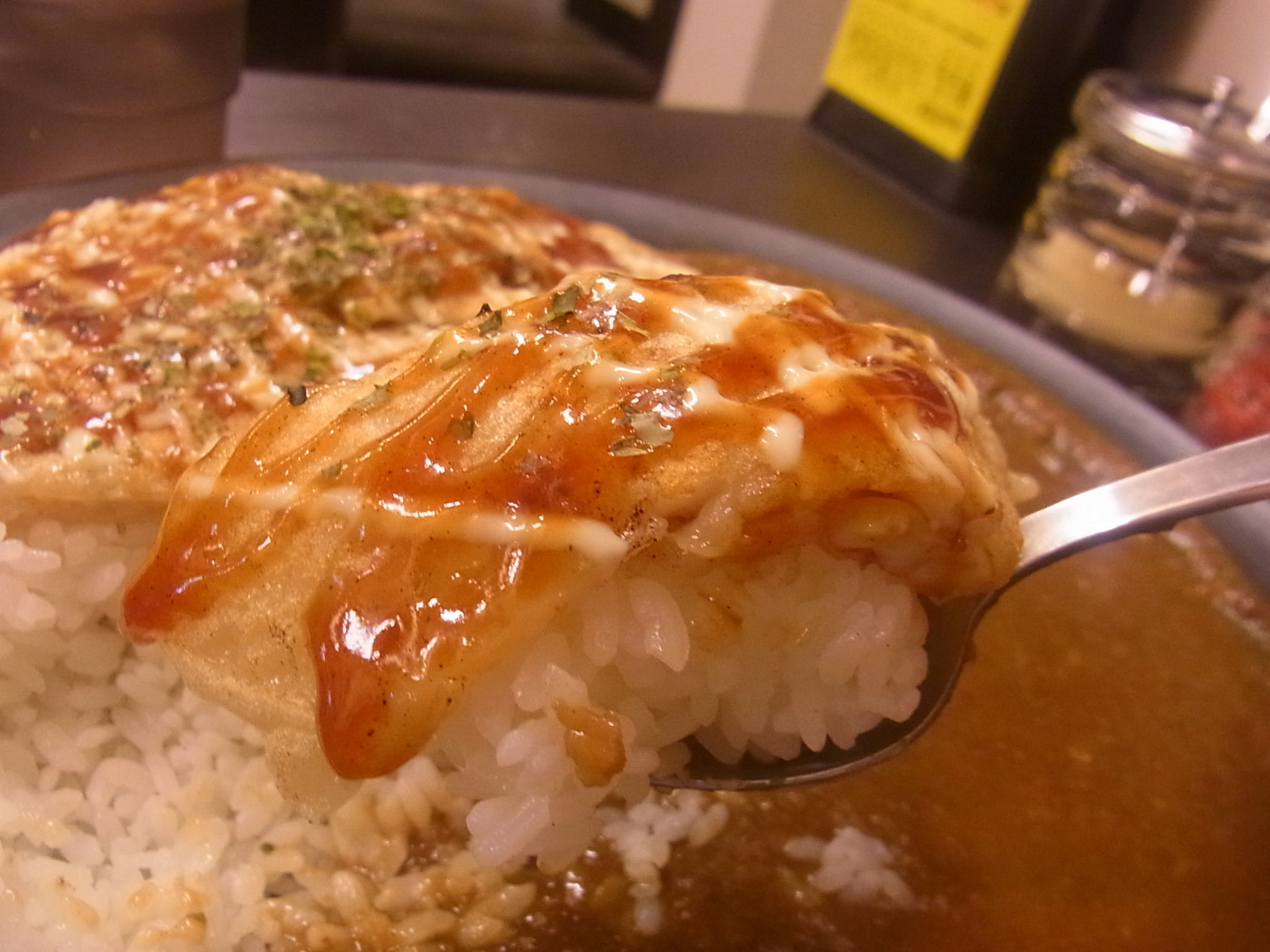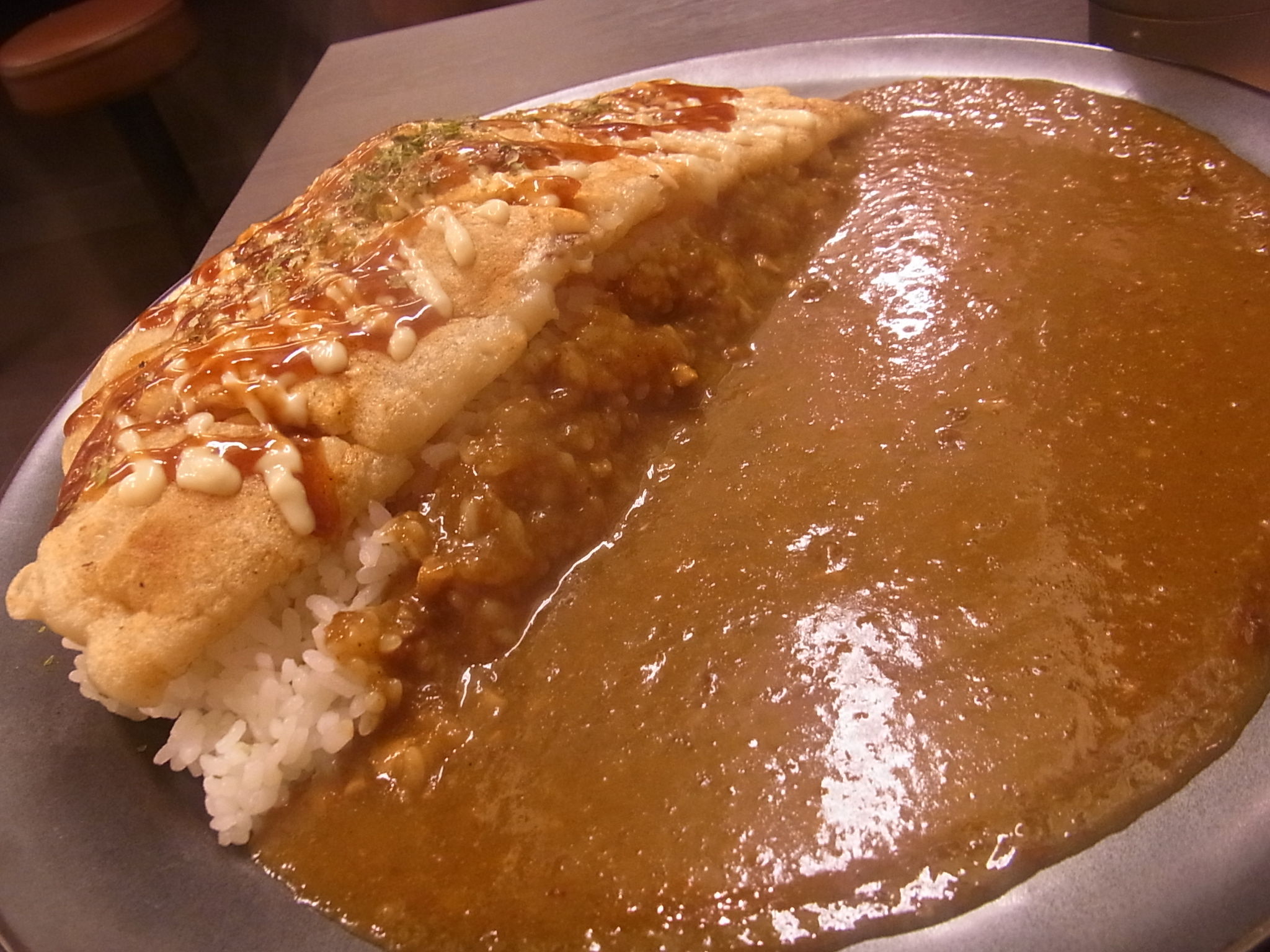 そして、頼んでみたのは、お店1番人気らしいイカ焼きカレー! (トッピングしてるやん!)