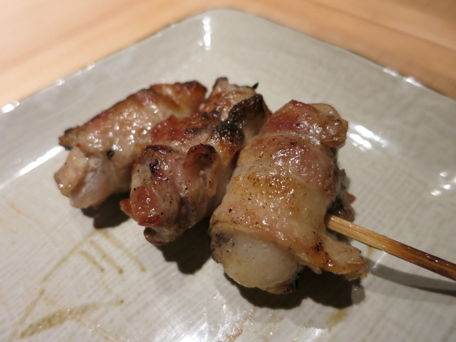 軟骨入りのつくねに、王道のかしわ(もも肉)、そして生姜を巻いた相性抜群の豚バラ。