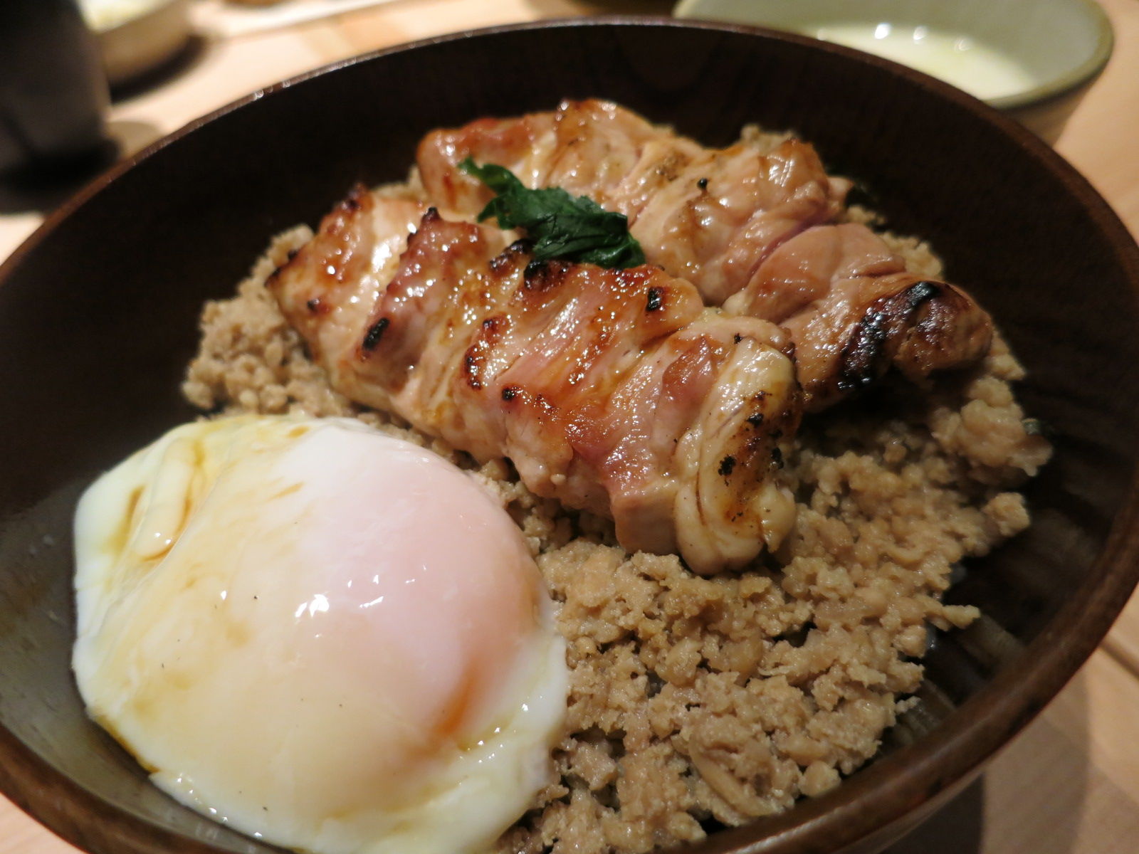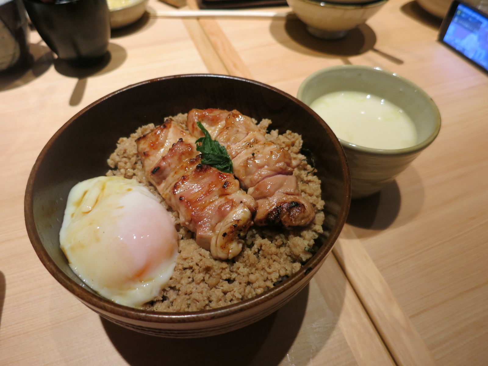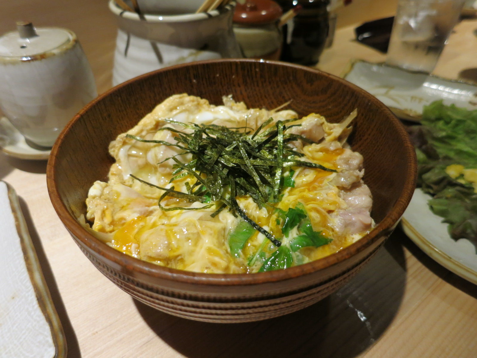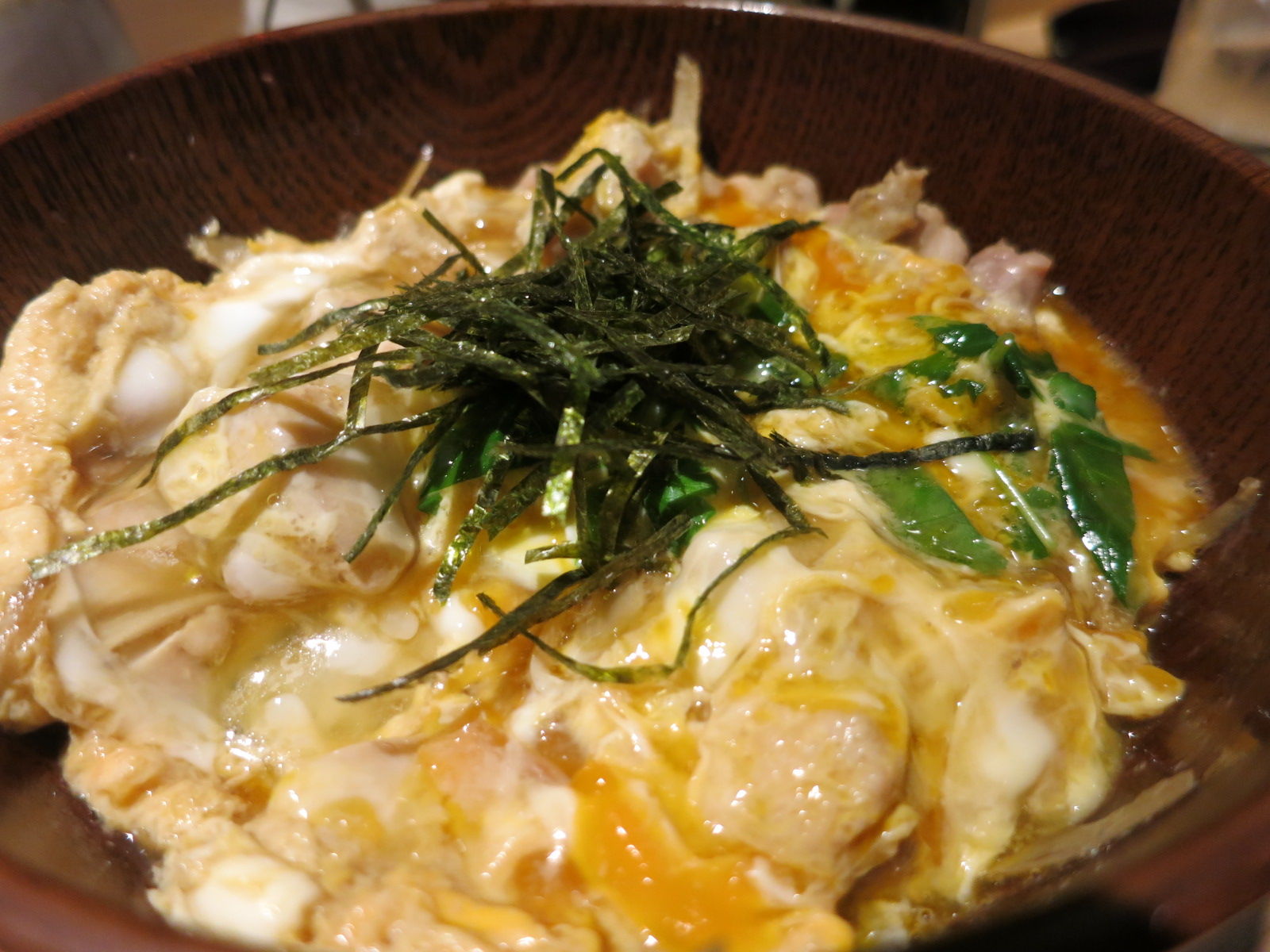 計15本の串をクリアしつつも、もちろん〆炭水化物は別腹なので、王道の親子丼を。