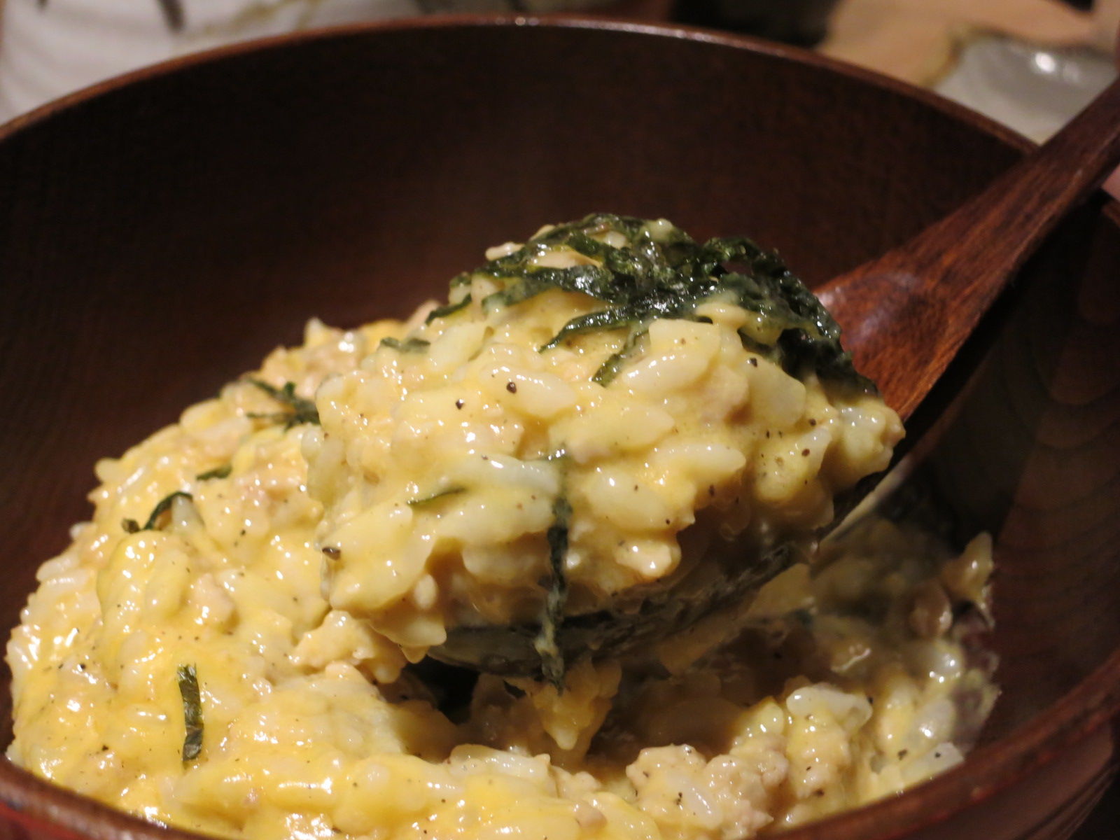 コッテリ濃厚なチーズ&クリームと和えてあるので、〆として賛否が分かれそうですが、