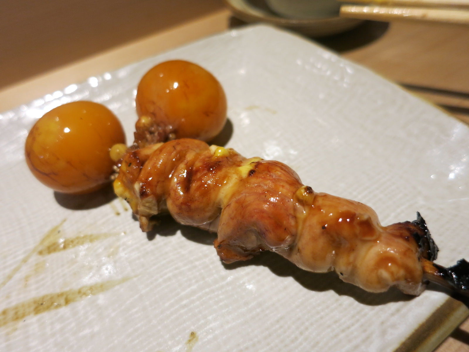 「酉玉」でも一番感動した部位、ちょうちん(半熟の腹卵+子宮)で弾ける卵黄を!