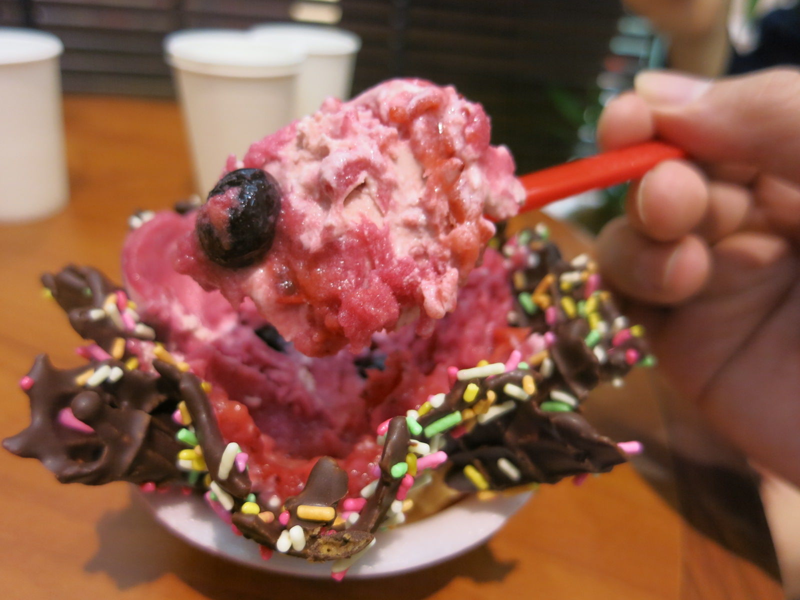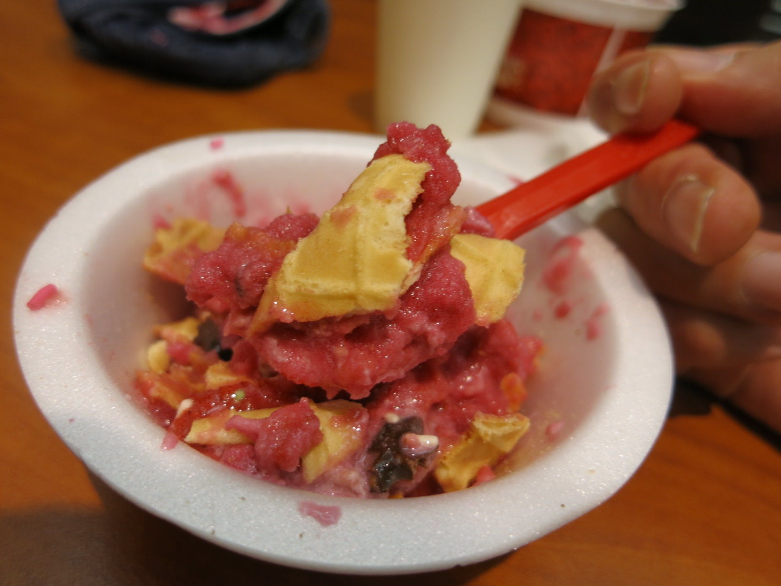 器にしたワッフルホールを砕いて途中からMIXすれば、食感の変化も楽しいところ。