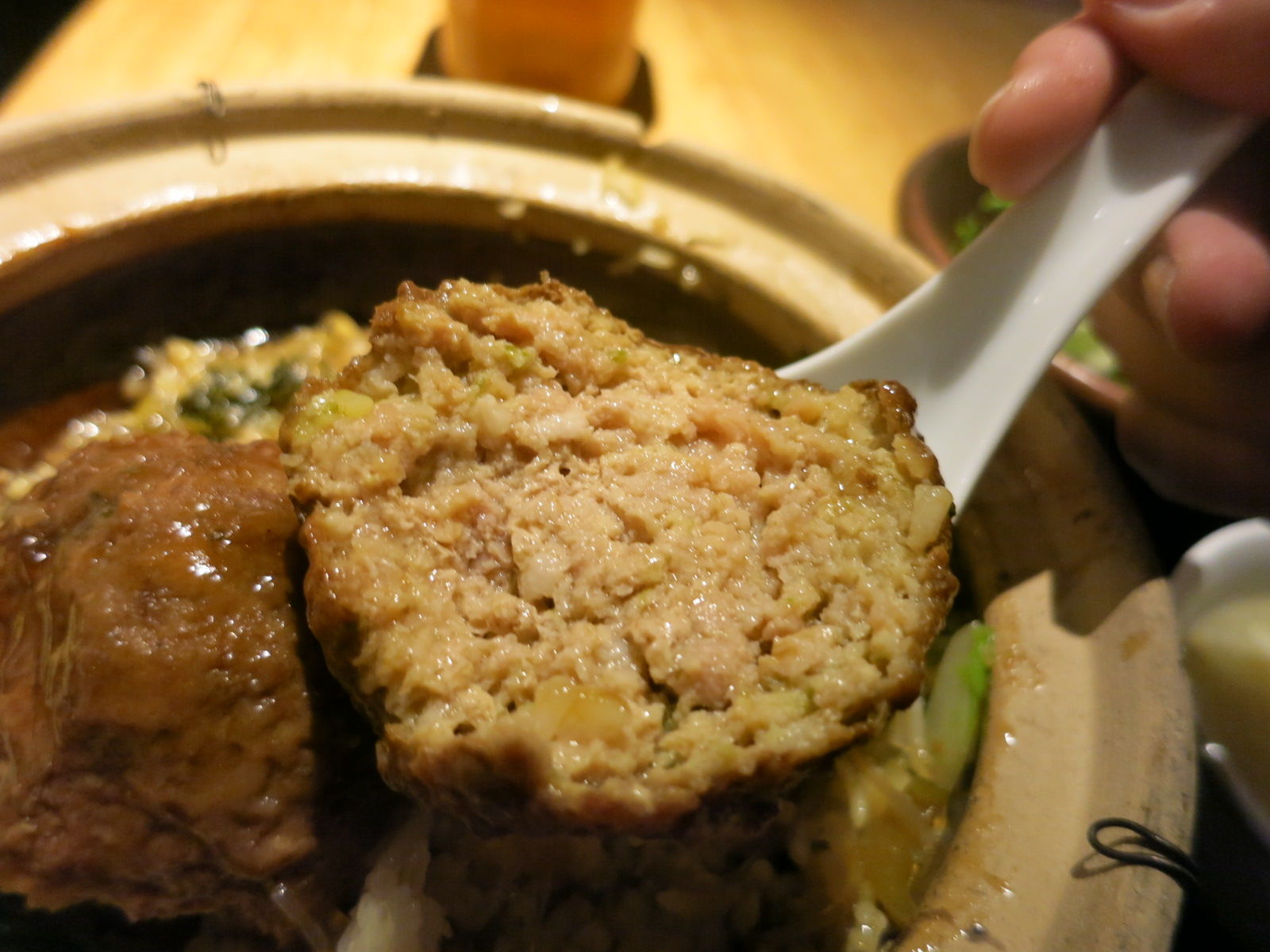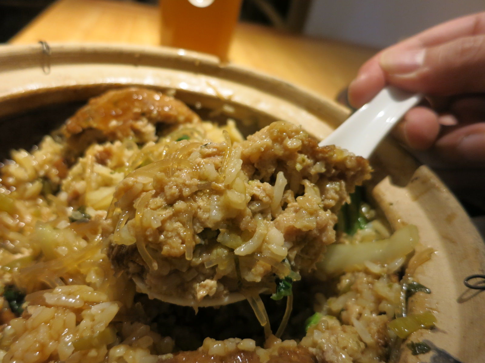 それよりもボリューミーなのが、アツアツの土鍋に入れられた、この肉だんごごはん。