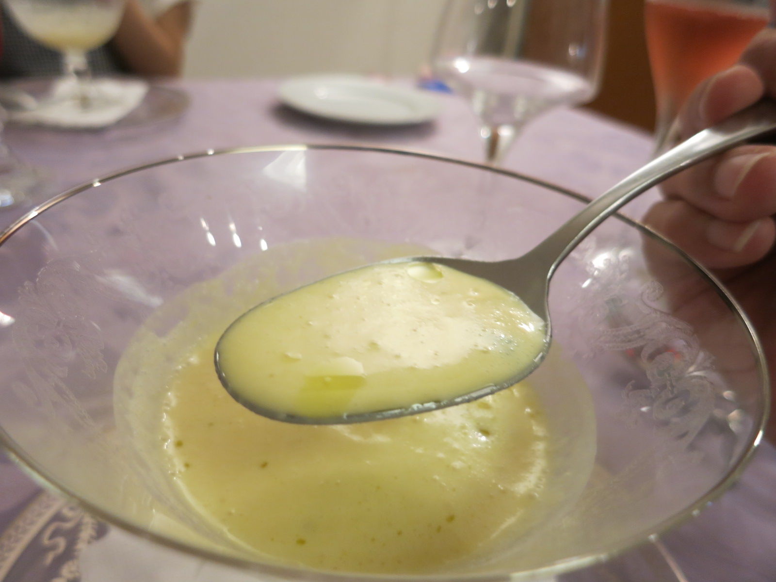 エスプーマでふわっと泡立てられたスープは、まろやかクリーミーで体に浸みる優しさ♪