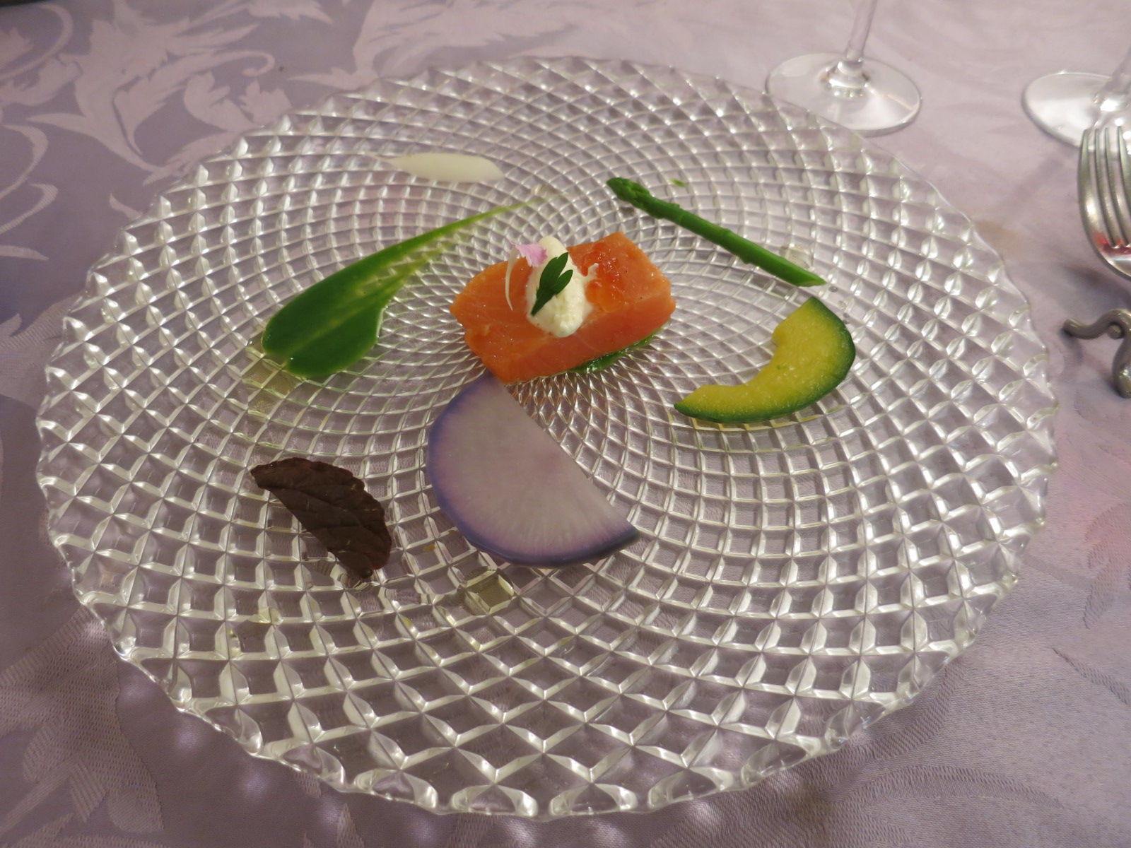そして、サーモンのミキュイ(食材の中まで微妙に火を通した調理法)が登場すると…