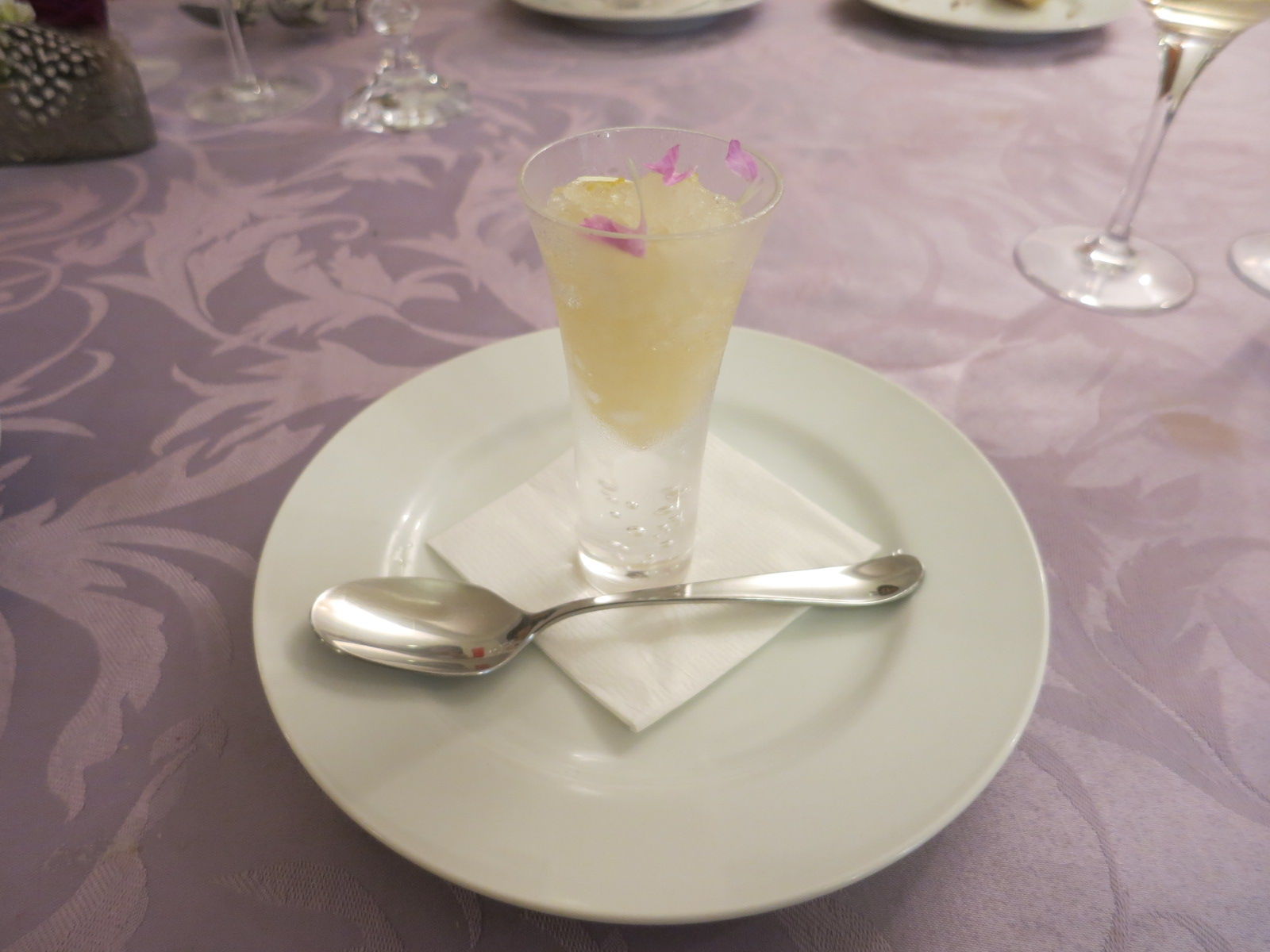続いてのシャーベットでは、マスカットをあえてミュスカと言うのがワルメン流ですが…