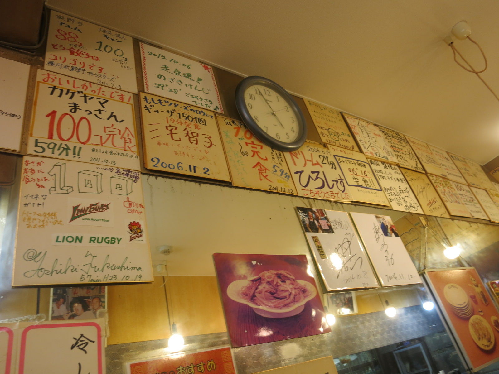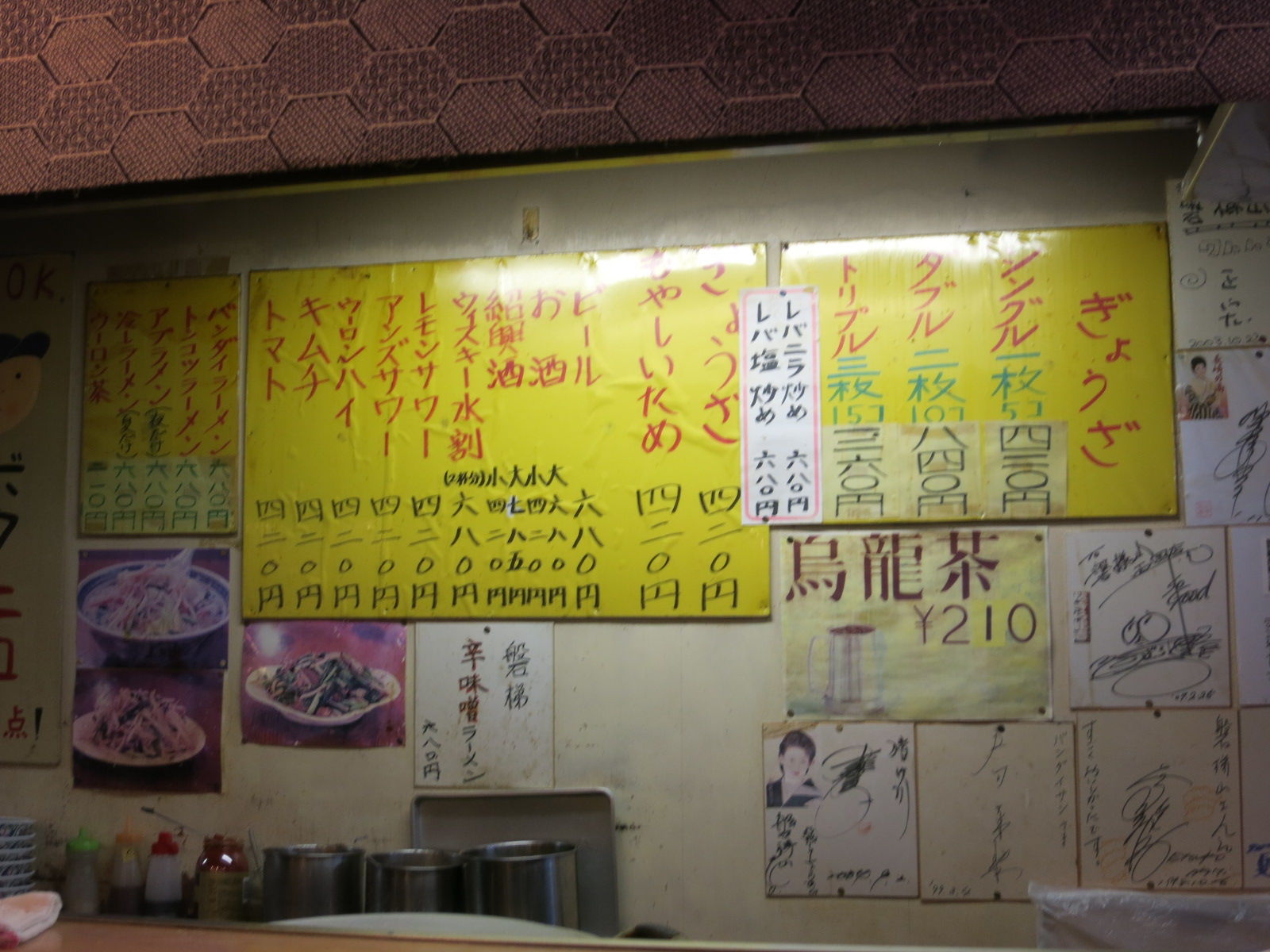 店内には黄色くなったサインがずらっと一面に貼られ、今までの歴史を感じさせますが…