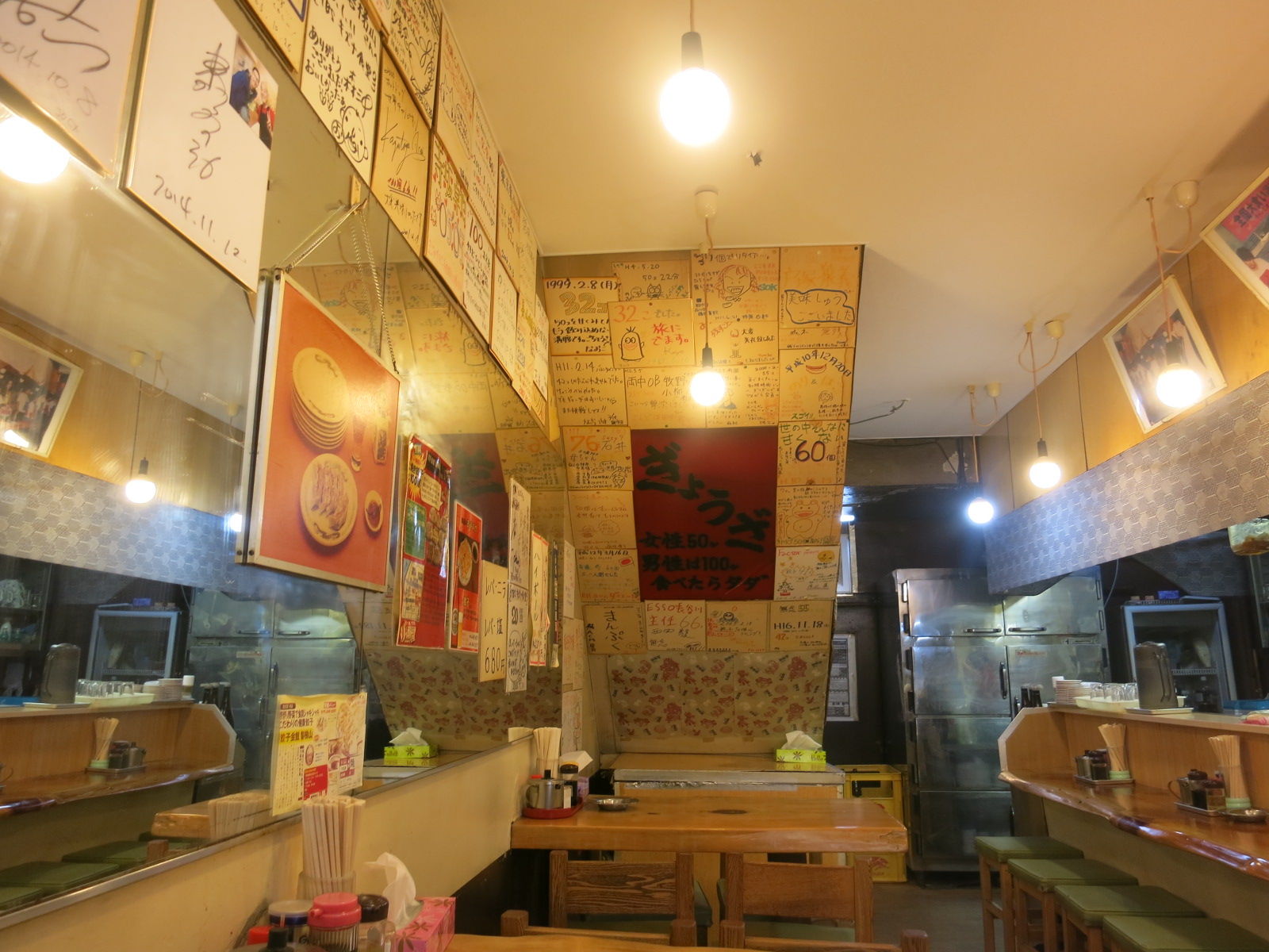 ということで入ったこのお店は、「磐梯山」という、昭和39年に創業した老舗餃子屋。