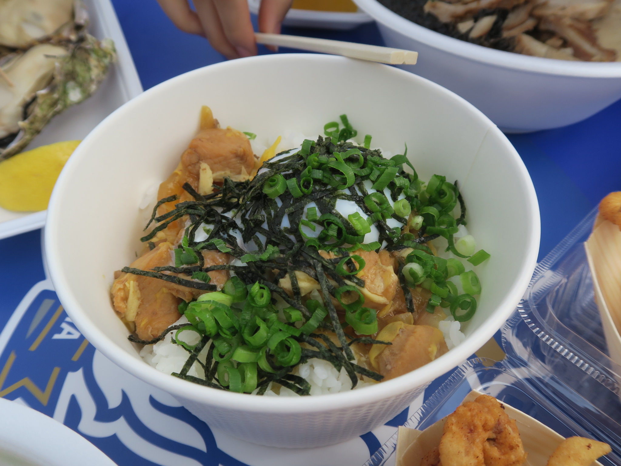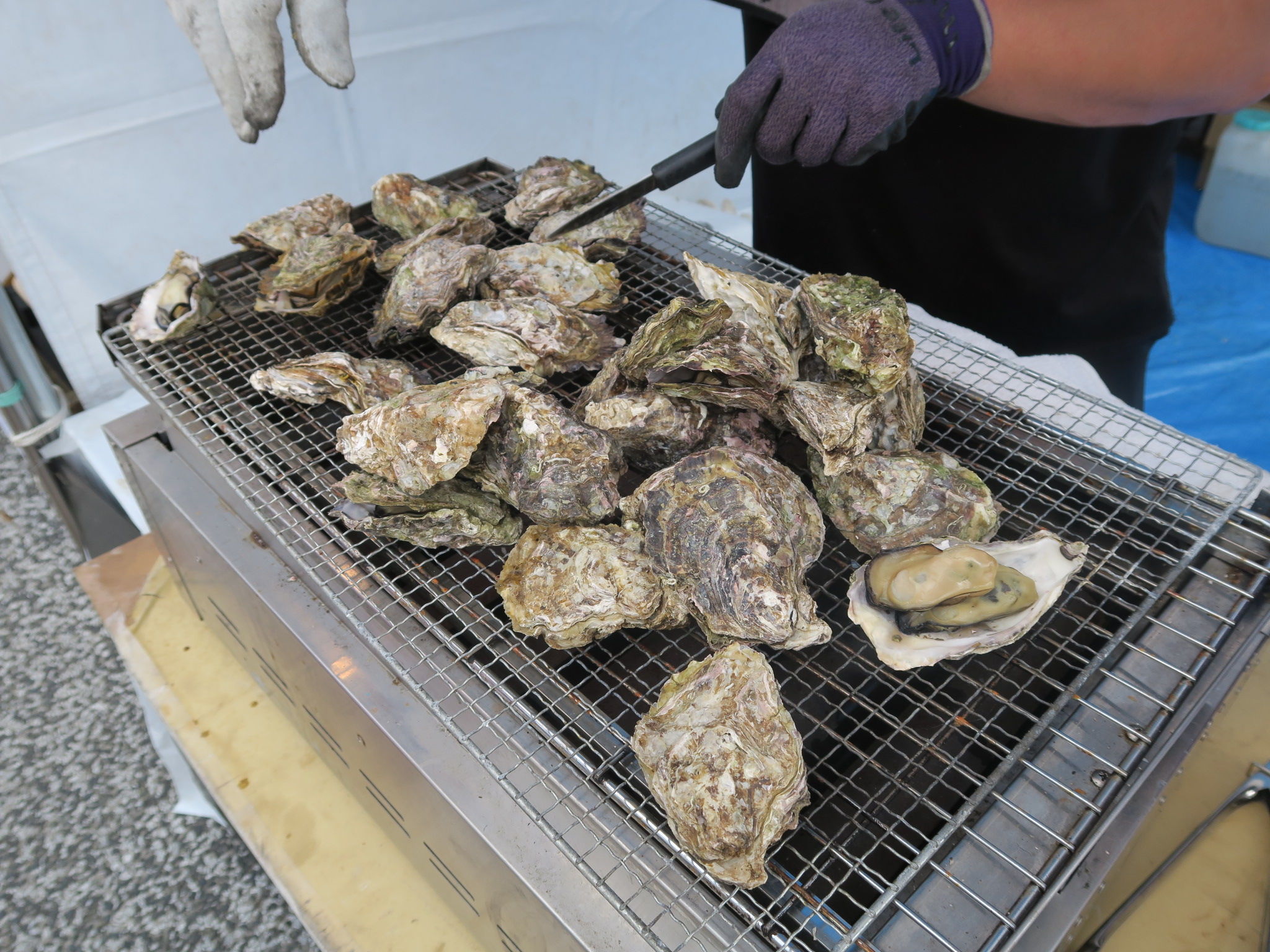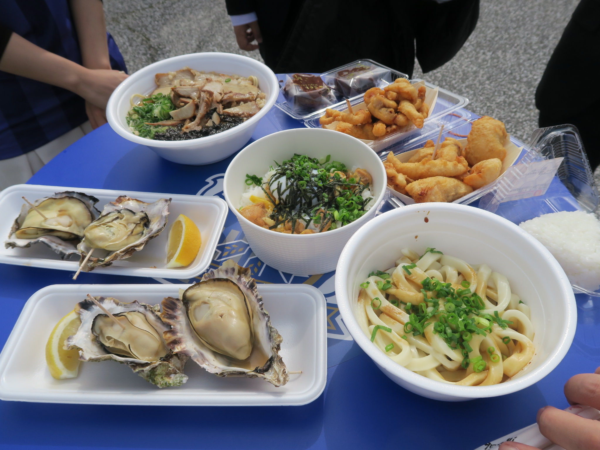 ずらっと並ぶブースには、王道系のメニューはもちろん、焼牡蠣やお好み焼きなど…
