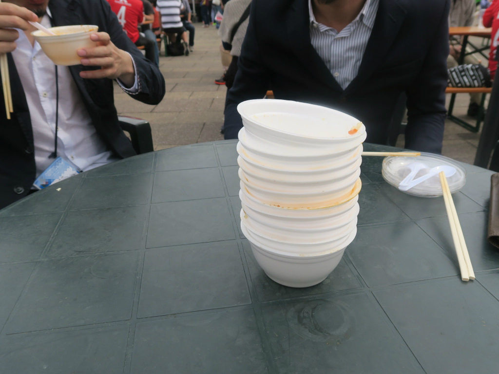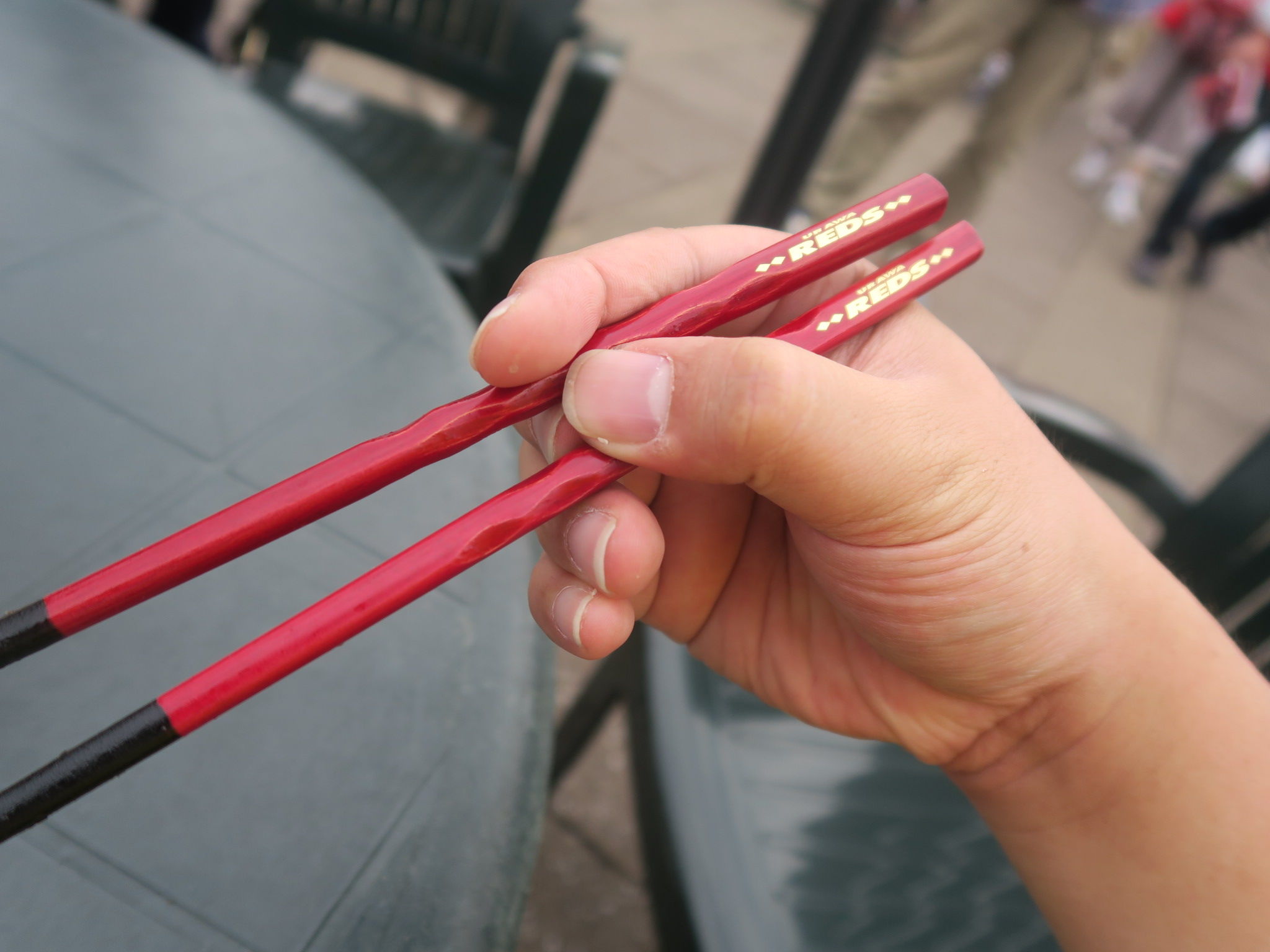 チームのマイ箸でパワフルに丼をかきこめば、このあとの応援にも熱が入るというもの!