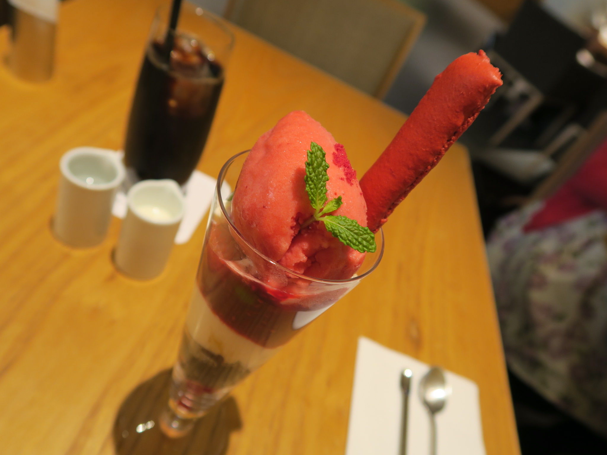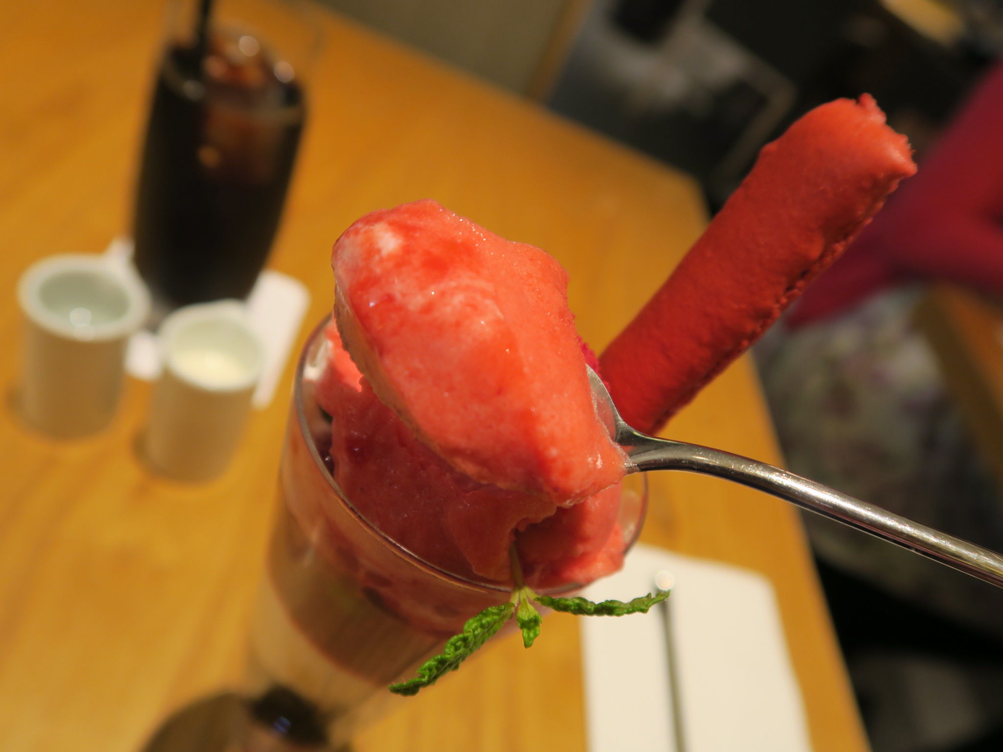 洋と和が融合したとも言える、ラズベリーと黒糖のパフェなるチャレンジングな1杯を!