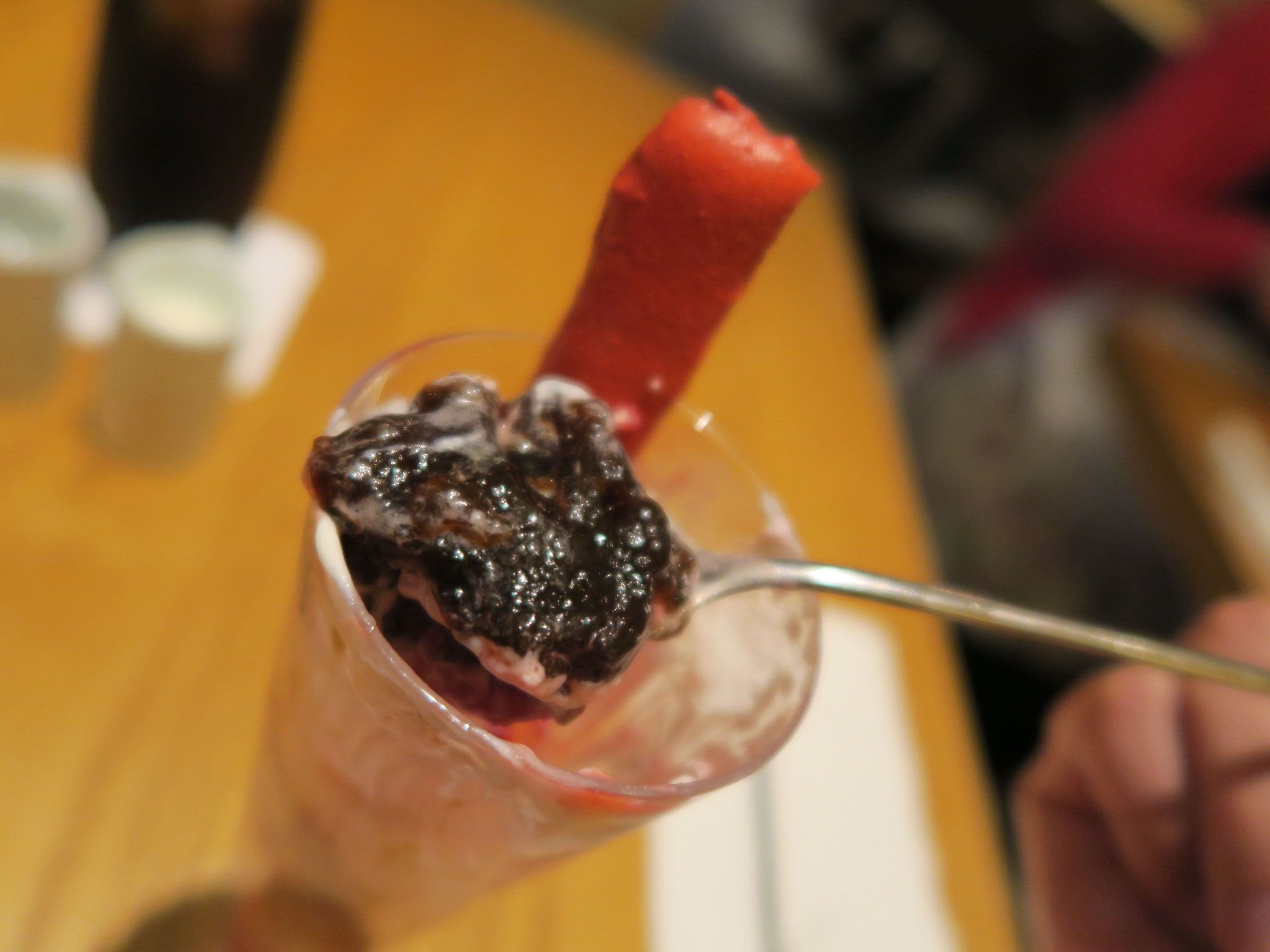さらに奥には、ぷるんぷるんな黒糖ジュレがいて、意外にもこれがちゃんとした相性!