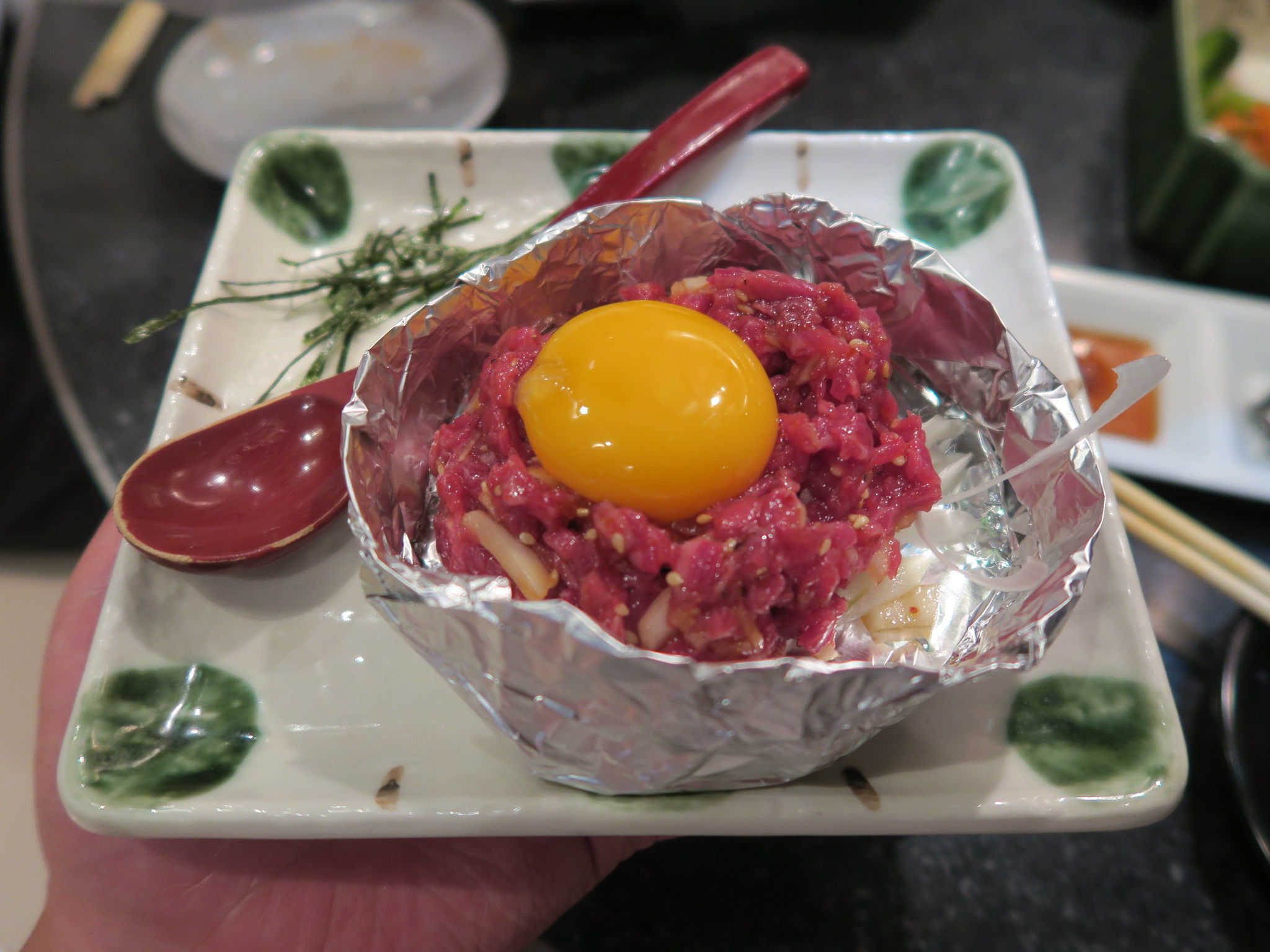 ホイル焼きで火を入れてから食べるユッケや、青唐辛子が絶妙な塩ギャラ(胃袋)に…