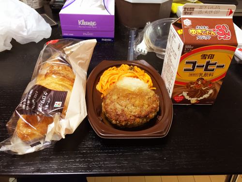 昨日から関西のヲタ仲間が泊まりに来てて、朝食を近所のコンビニに一緒に買いに行った。ファミマが一番近いんだけど、今朝は信号を渡ってセブンイレブンに行った。やっぱり広いってのもあるのかもだけど、食に関しては一番充実してると思うな。買ってきたのはこんな感じ。