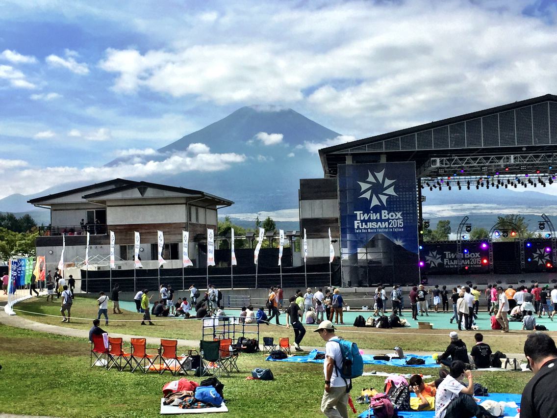 メインステージのひびきステージ。背景に富士がくっきり!これは気持ちいいわ( ´ ▽ ` )ノ。