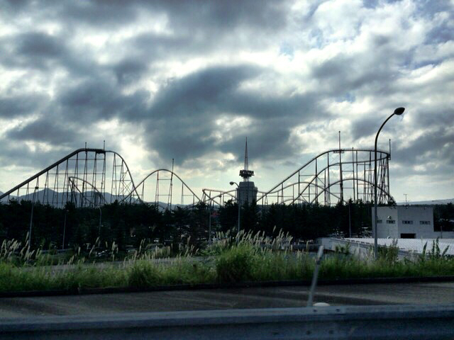 途中富士急ハイランドの横を通る。まだ開園前なのからか奇妙な廃墟感。
