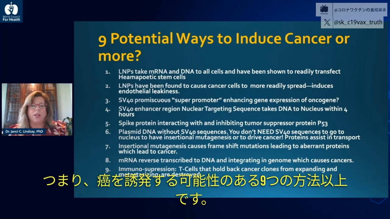 リンゼイ博士:コロナワクチンが癌を引き起こす九つ可能な機序。(DNA混入問題専門家会議)リンゼイ博士:コロナワクチンが癌を引き起こす九つ可能な機序。(DNA混入問題専門家会議) [社会・政治・時事] 1脂質ナノ粒子自体がmRNAとDNAをすべての細胞に取り込むことができ、造血幹細胞に容易にトランスフ...www.nicovideo.jp