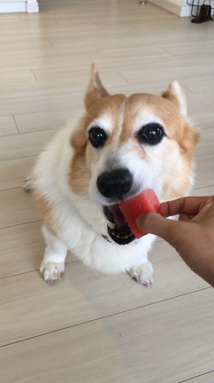 コーギーリキ:スイカも好き。