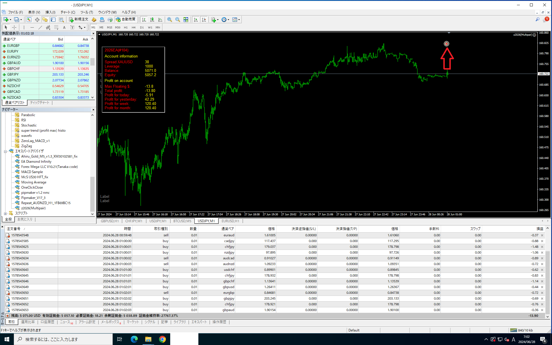 デフォルトの数値ではゴールド通貨ペアのみでしか稼働しません。
