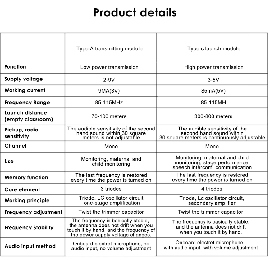 2.入力マイクとオーディオ感度は調整可能で、送信周波数は連続的に調整可能です。