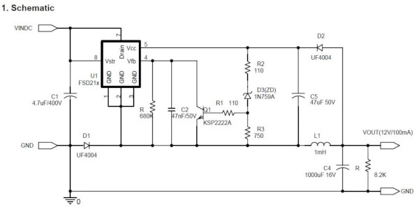 「入力DC120~375Vから出力DC12V(100mAmax)を作るDCDCコンバータ」