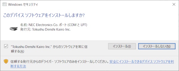出たー「このデバイスをソフトウェアをインストールしますか?」
