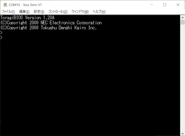 何も出ないので改行を送ってみるとおおーTragiBIOS Version1.20Aと表示。