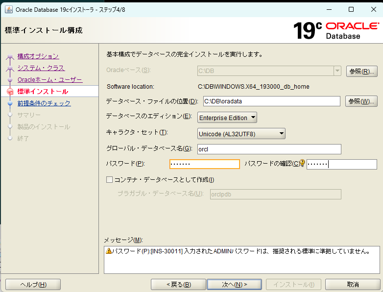接続先: Oracle Database 19c Enterprise Edition Release 19.0.0.0.0 - Production