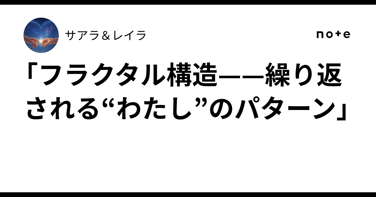 「フラクタル構造——繰り返される“わたし”のパターン」|サアラ&レイラこの世界は、 同じ構造が形を変えて繰り返されている。 身体においてもそうだ。 離れている部位同士が連動し、 一部の変化が全体に影響を及ぼす。 それは身体だけではない。 人間関係、社会、そして時代の流れにも 同様のパターンが見える。 一つの時代を、 始まりから終わりまでのサイクルとして捉えると、 その構造は繰り返されている。 ただし、同じものが…note.com
