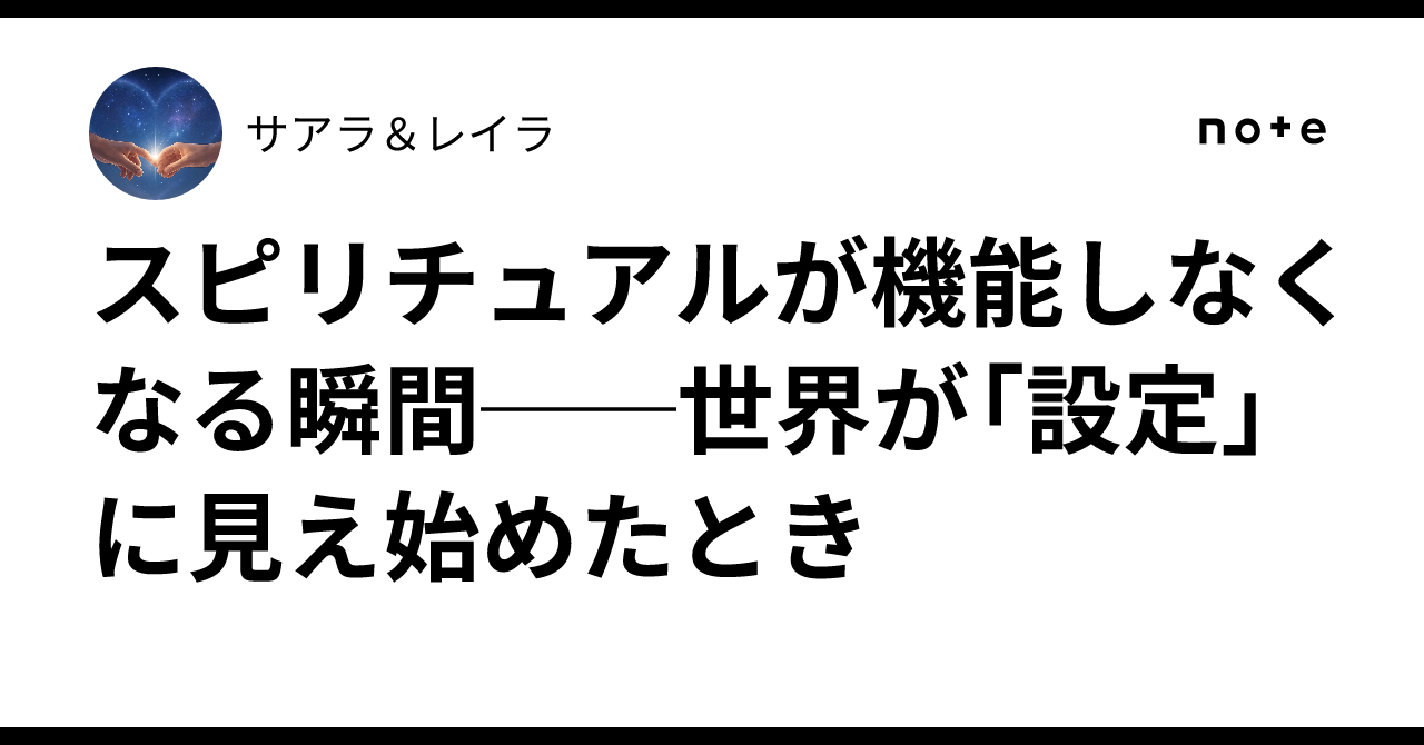 スピリチュアルが機能しなくなる瞬間──世界が「設定」に見え始めたとき|サアラ&レイラスピリチュアルが機能しなくなるのは、 「闇を否定したとき」でも 「光に目覚めたとき」でもない。 それを“道具”として見てしまった瞬間だ。 多くのスピリチュアルは、 ・不安を和らげる ・意味を与える ・希望を持たせる という点で、確かに役に立つ。 でもそれは同時に、 管理システムとしても完璧だった。 波動、次元、使命、カルマ、契約。 それらは本来、 体…リンクnote.com