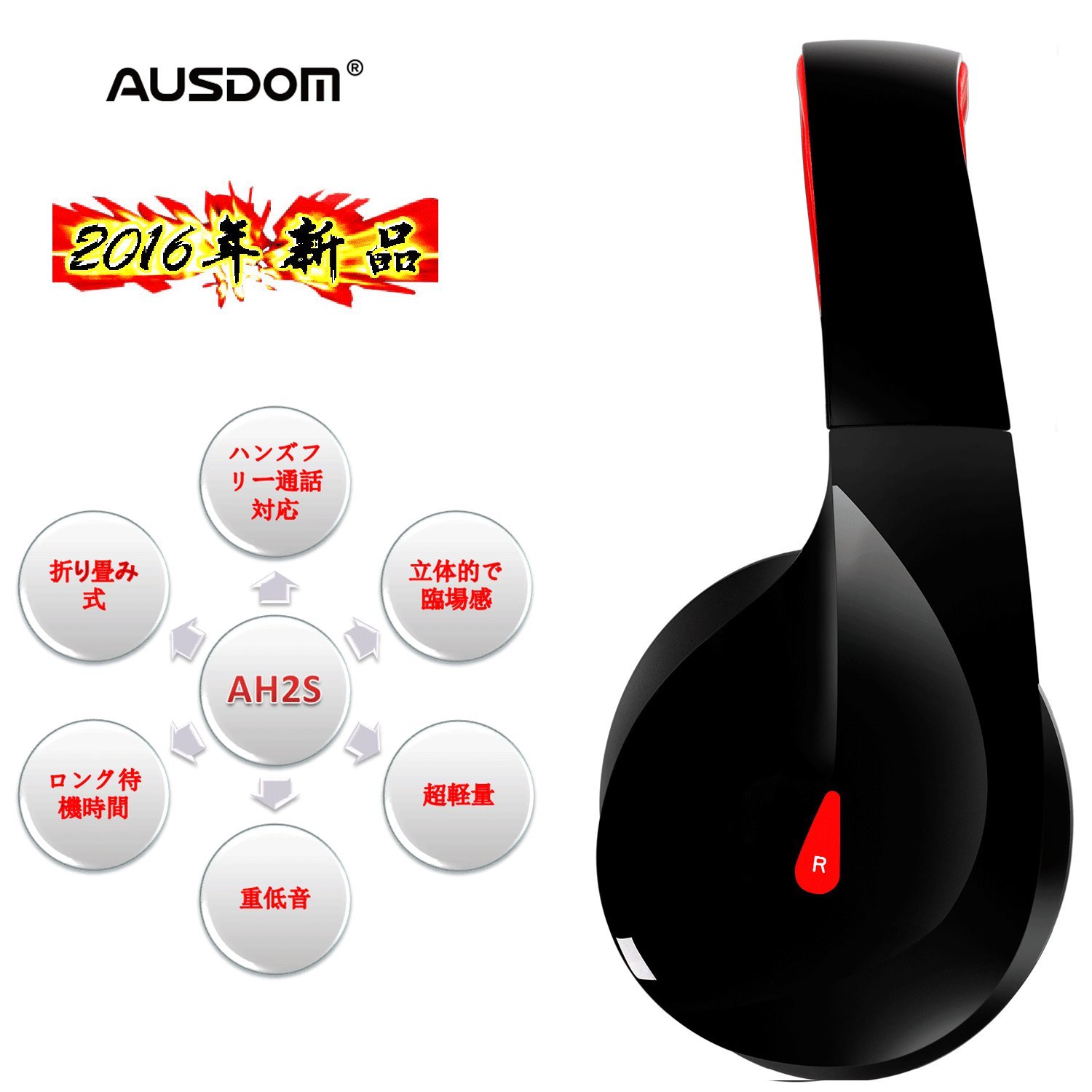 【AUSDOM正規品】AUSDOM Bluetooth 4.0 ワイヤレス ヘッドホン 軽量 1800時間待機 折りたたみ式