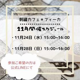 刺繍カフェ*フィーカ 11月スケジュール