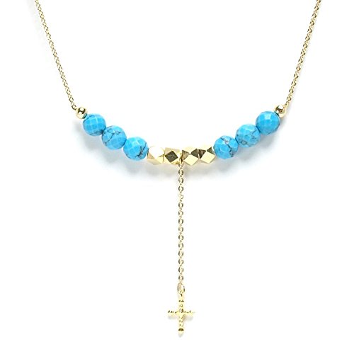 鮮やかなブルーが目を引くハウライトターコイズのネックレス。小さなクロス(十字架)をチャームに用い、存在感のあるデザインに仕上げました。爽やかな印象を与えたいコーディネートにはぴったりのアイテム。