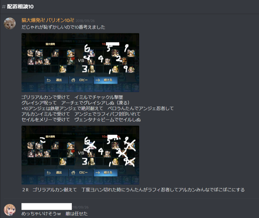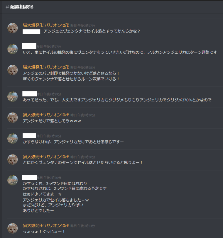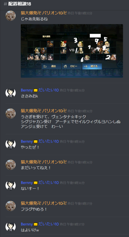 ①BDGはみんなで協力して☆3取ってくることを前提としたギルドであり、なおかつ攻撃被りなどを防止する為、discordに配置相談・攻撃宣言をすること
